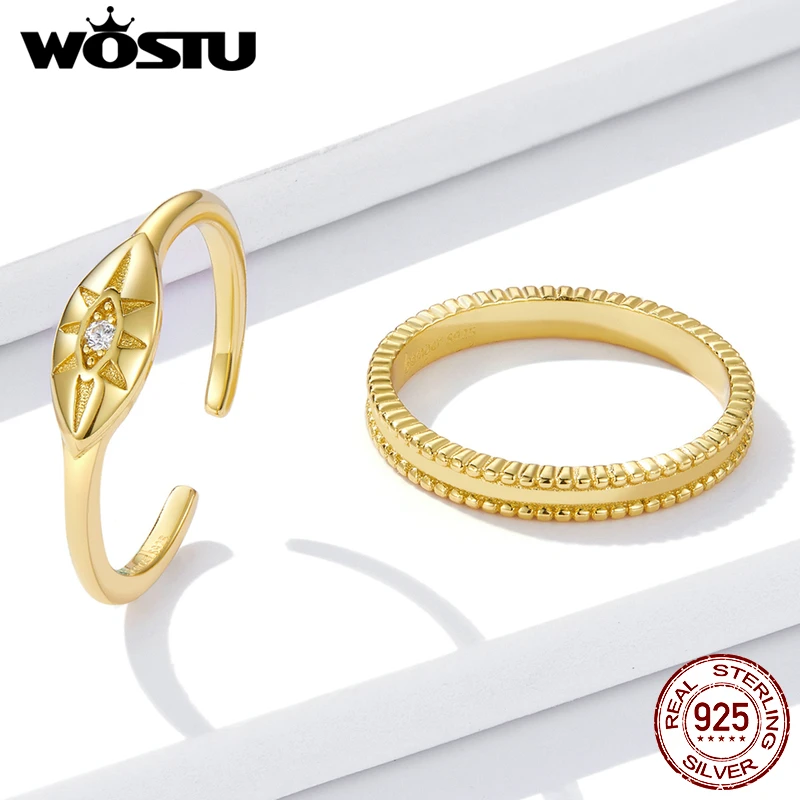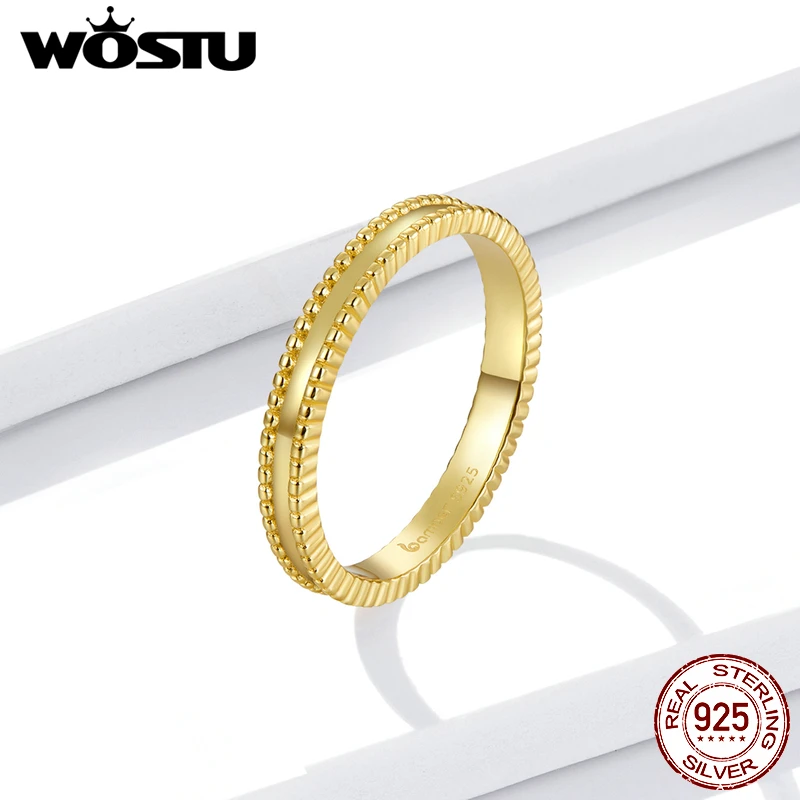 WOSTU, Настоящее серебро 925 пробы, желтое золото, европейские минималистичные кольца для женщин, размер США 6, 7, 8, свадебные украшения, prata 925