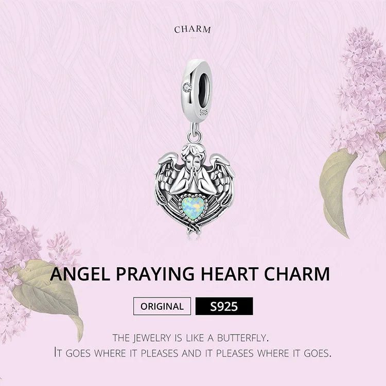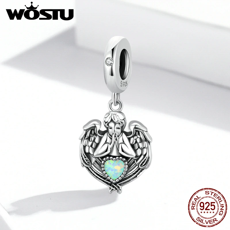 WOSTU, Стерлинговое Серебро 925 пробы, крылья ангела, сердце, молитва, девушка, опал, оригинальные подвески, бусы, подходит для ожерелья, браслеты, Женские Ювелирные изделия, FNC568