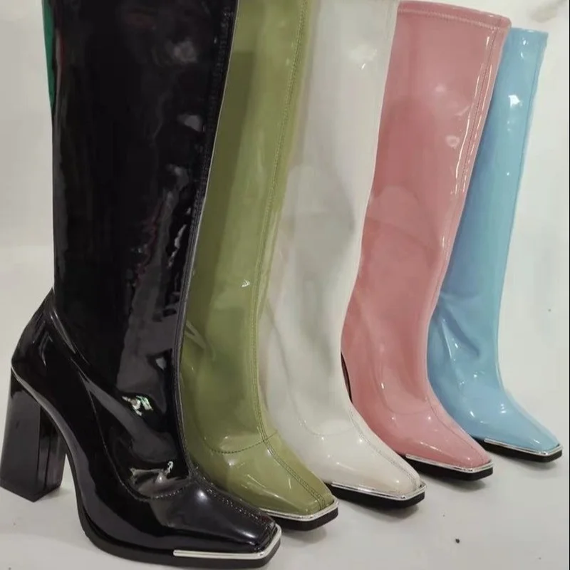 Новинка 2020, популярные женские сапоги из лакированной кожи, водонепроницаемые сапоги до колена, белые, красные вечерние Фетиш-сапоги, женская обувь, Осень-зима