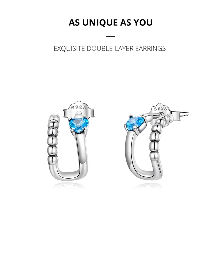 Женские серьги-гвоздики из серебра 925 пробы, с голубыми фианитами