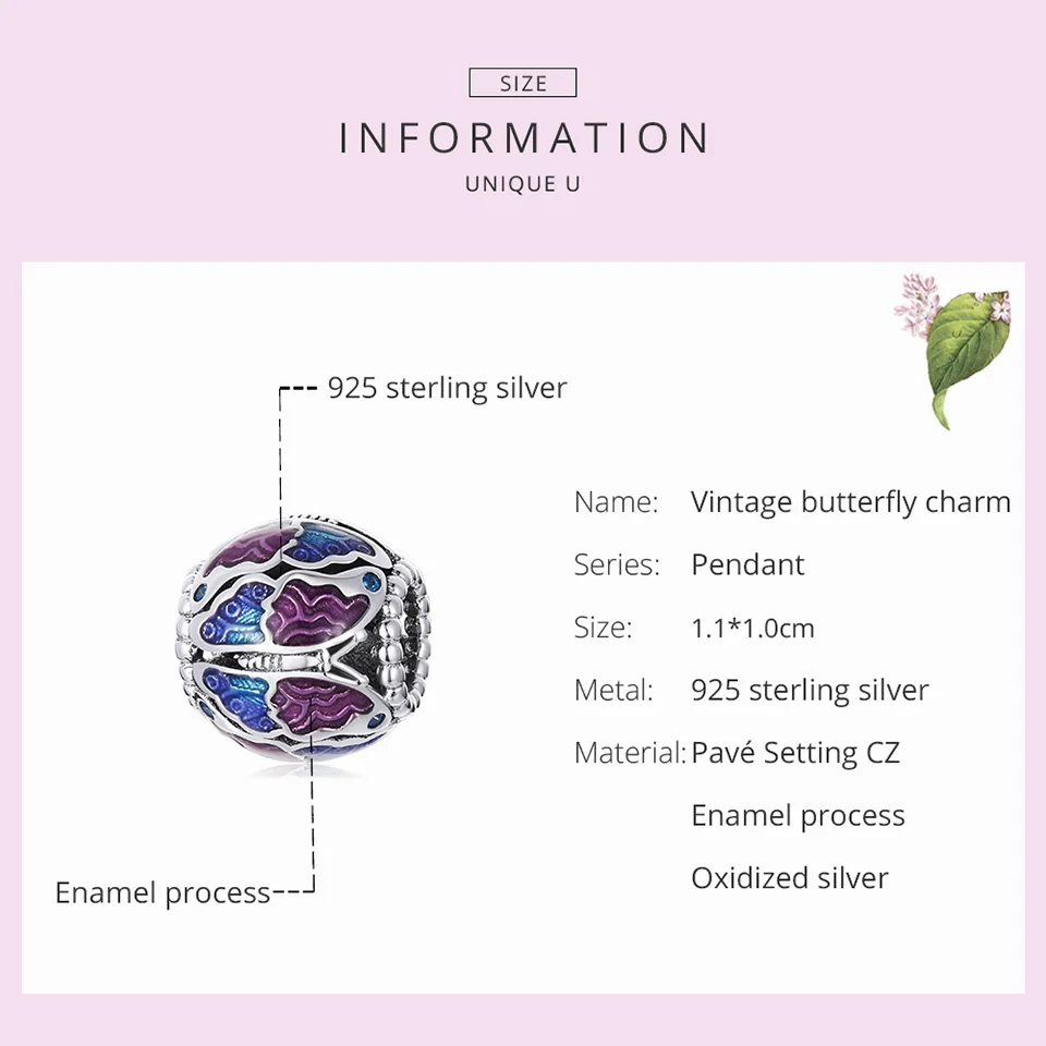WOSTU, чистый 925 пробы, серебро, оригинал, винтажная бабочка, стрекоза, подвески, бусины, подходят для браслетов, браслетов, ювелирных изделий, FNC563