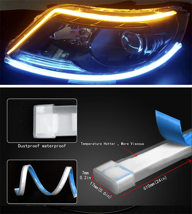 Автомобильный дневной ходовой светильник может быть согнут значительно более Совместимо, Высокая водонепроницаемость и влагостойкость для реагирования на различные условия окружающей среды