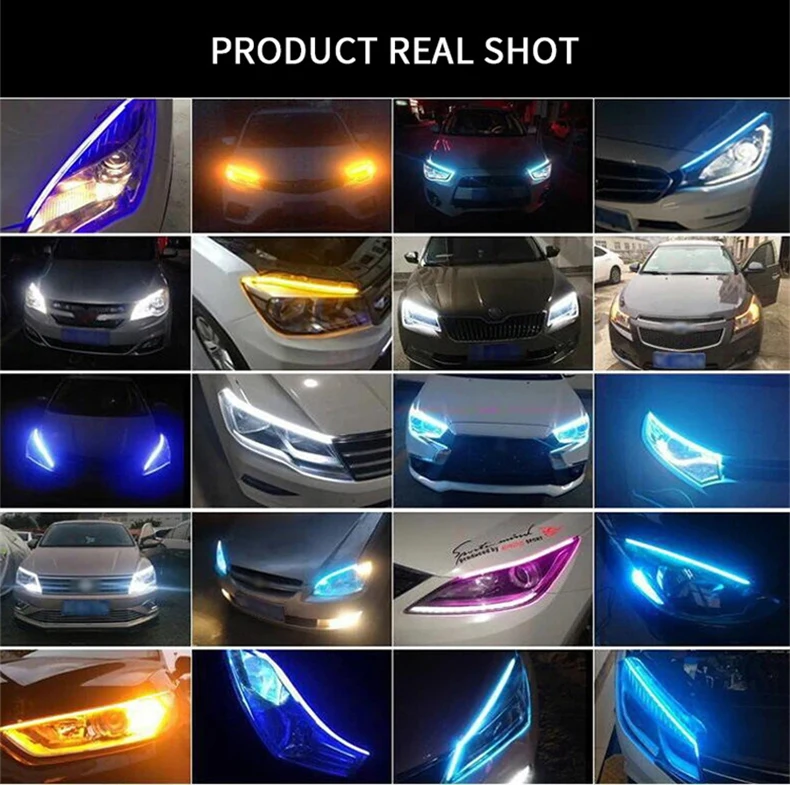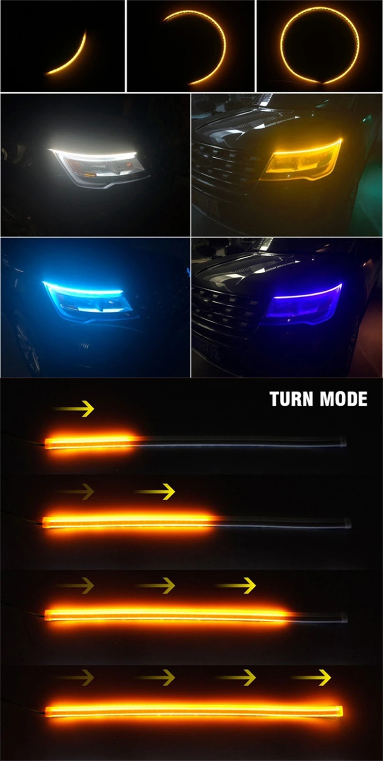 2 шт. Автомобильный светодиодный дневный ходовой светильник DRL Гибкая Водонепроницаемая полоса лампа белый указатель поворота тормозной поток светильник s Авто направляющий головной светильник s