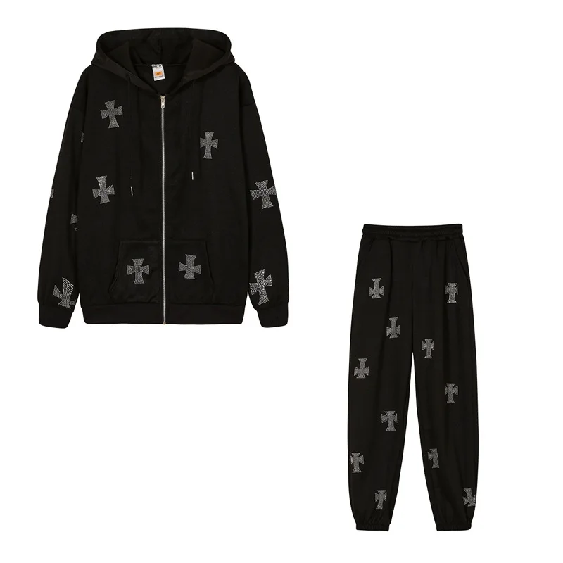 Женский спортивный костюм из двух предметов, свитшот на молнии и штаны со стразами