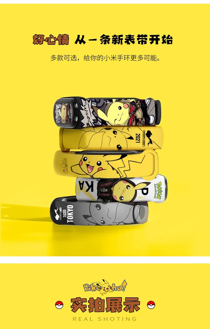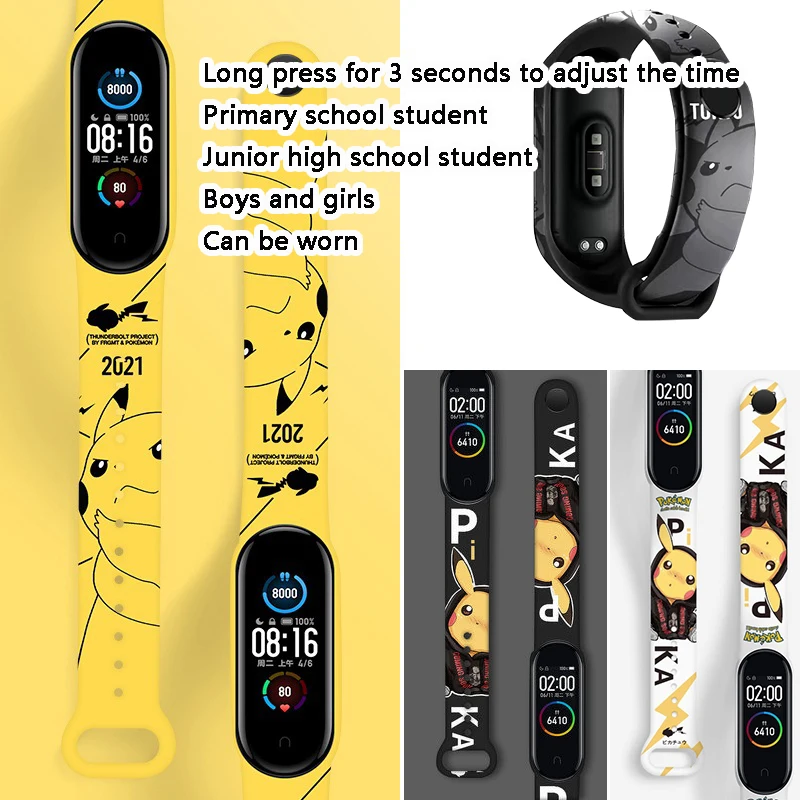 Фоторемень для Xiao Mi Band 6 5 4 3 Pikachu, цифровой электронный в...