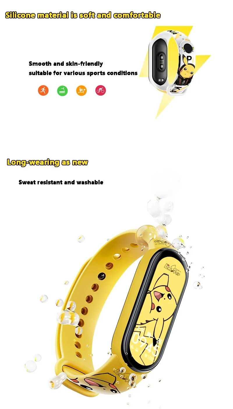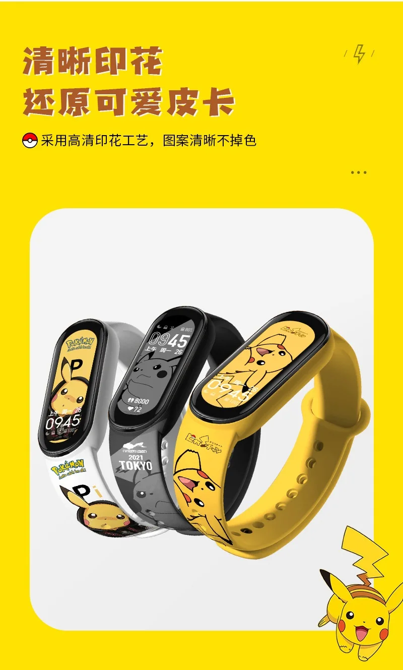 Ремешок из аниме Покемон Пикачу для Xiaomi Mi Band 3456, силиконовы...