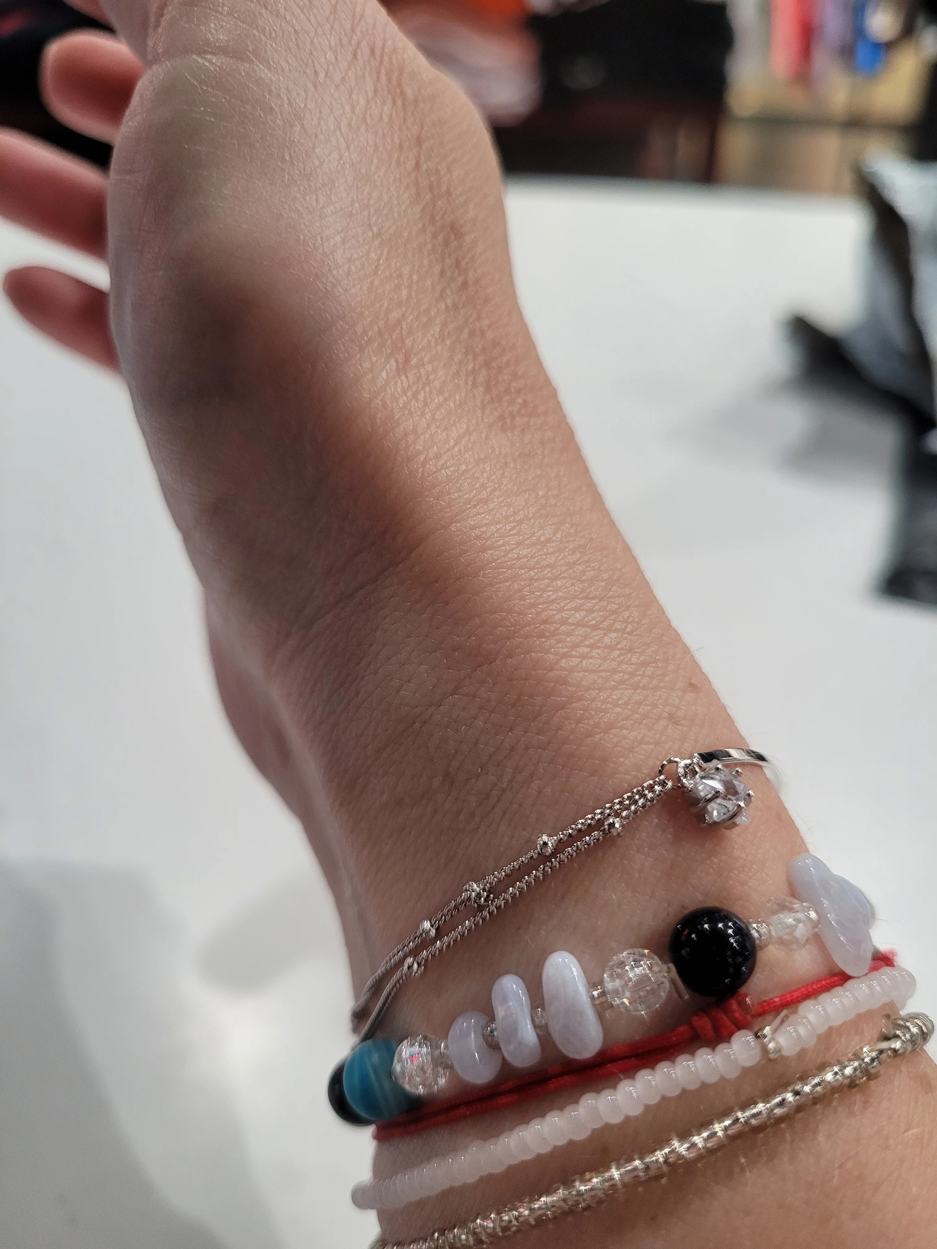 Браслет-цепочка женский двойной из серебра 925 пробы с бусинами