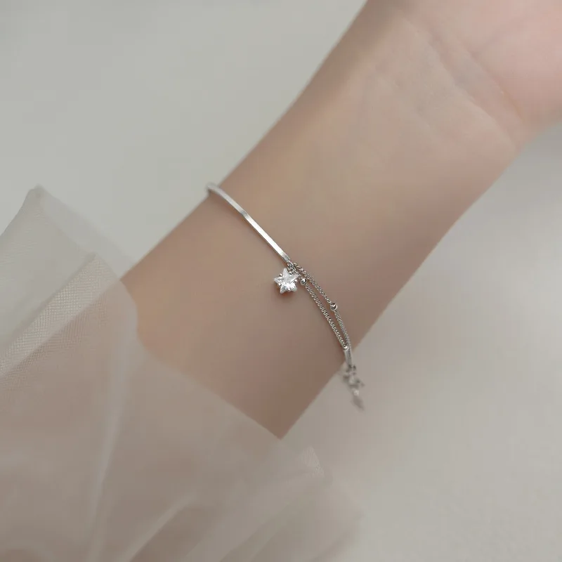 Браслет женский из серебра 100% пробы, Двойная Цепочка, 16 см