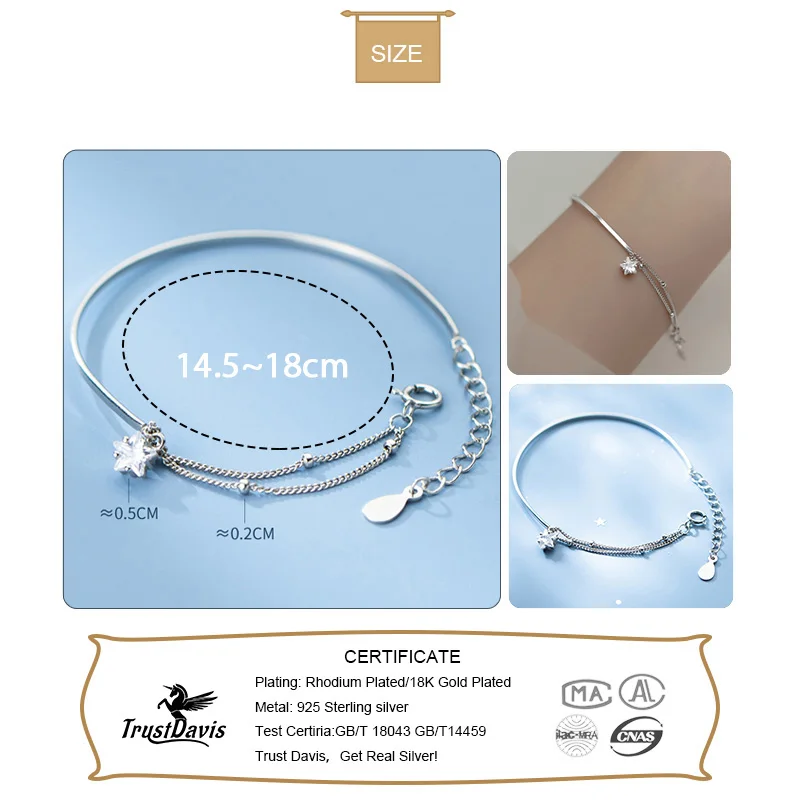 Браслет TrustDavis из настоящего серебра 925 пробы, Модный золотой ...