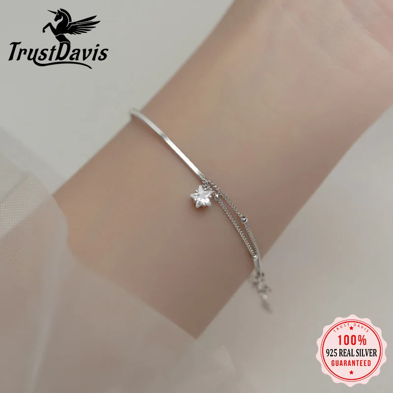 Trustdavis Настоящее серебро 925 пробы, модные очаровательные двойн...