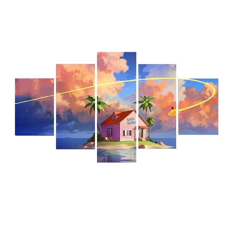 Постер с 5 панелями из аниме Драконий жемчуг, Гоку, холст, живопись, настенное искусство, картина, Фреска для гостиной, спальни, Современное украшение для дома, рамка