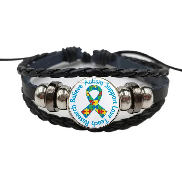 Женский браслет-пазл со стеклянной лентой, плетеный кожаный браслет для выживания, украшения с надписью Love Hopeful