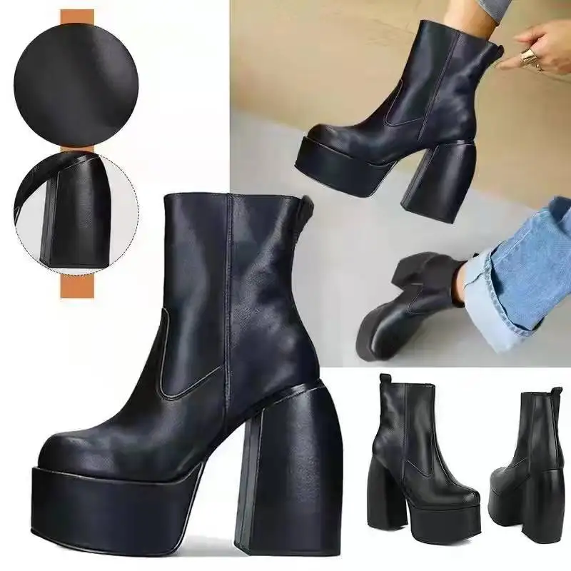 Женские ботинки; Коллекция 2021 года; Обувь на платформе; Обувь на высоком каблуке; Ботинки в стиле панк; Ботинки Осень-зима; Не сужающийся книзу массивный каблук; Ботинки в готическом стиле; Женская обувь; Размер 43