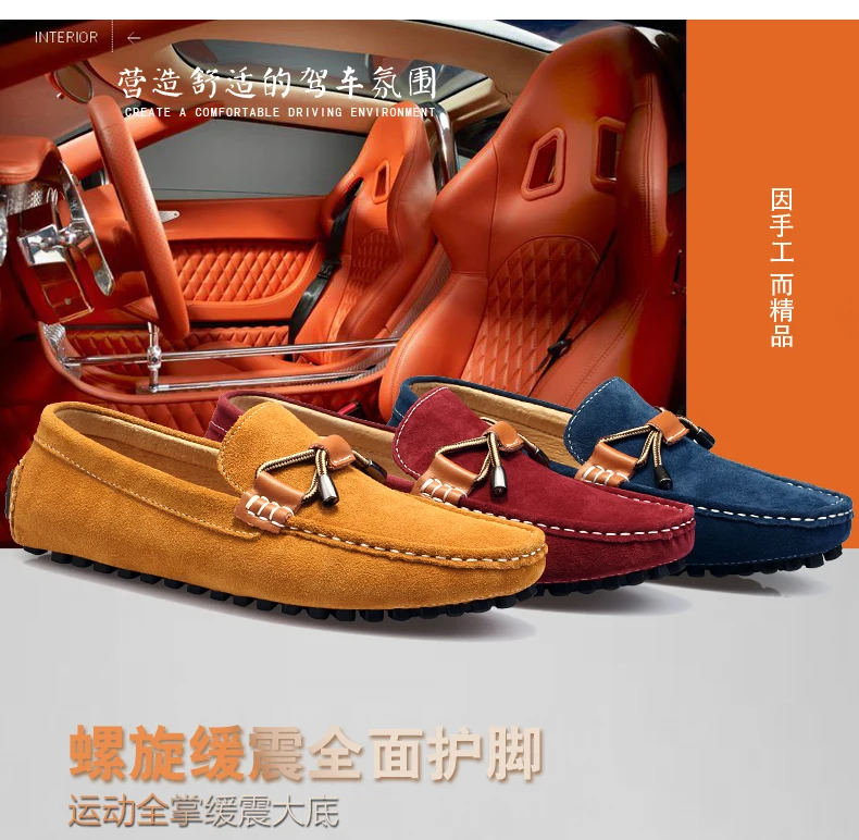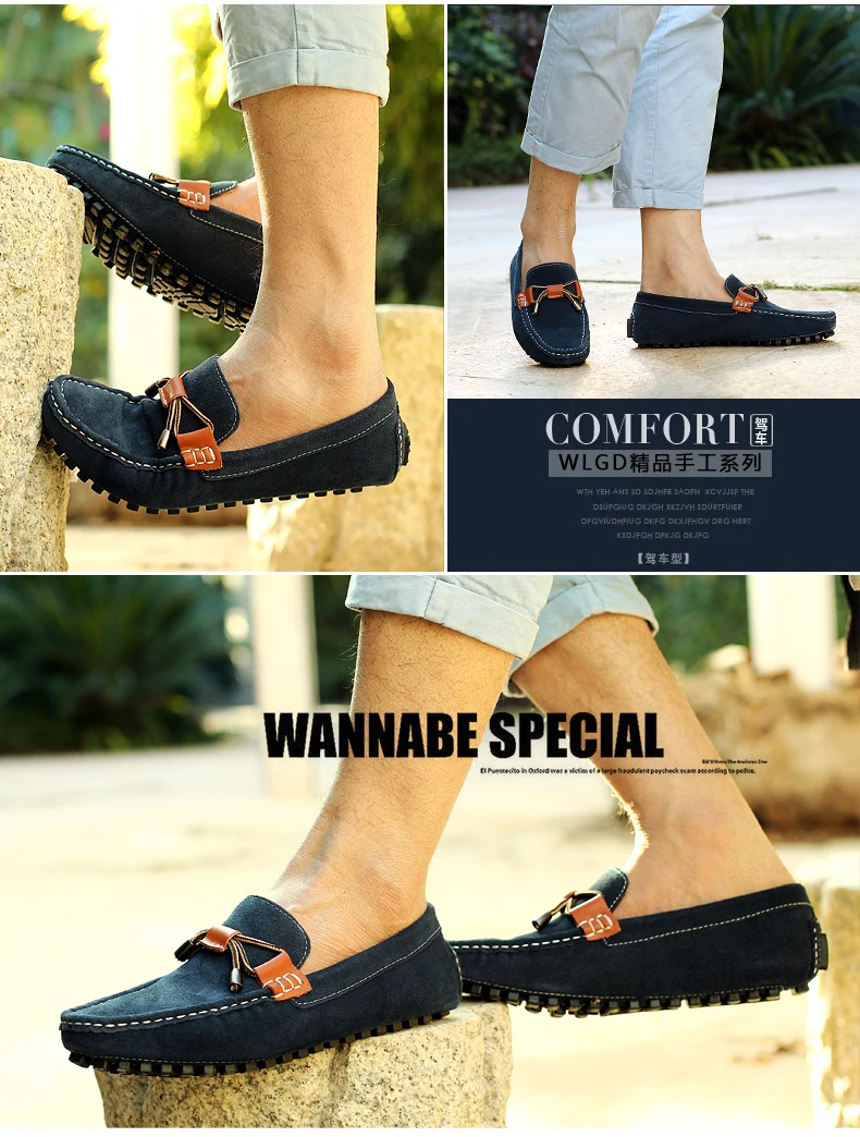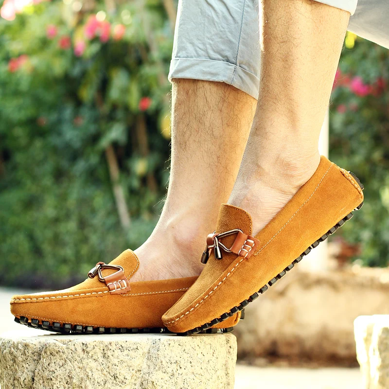 Мокасины из натуральной замши для мужчин и женщин, туфли на плоской...