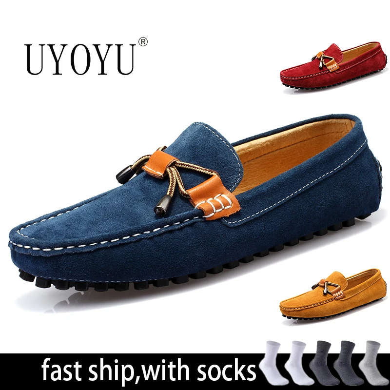 Брендовые мужские туфли из натуральной кожи, бычья замша, слипоны, ...