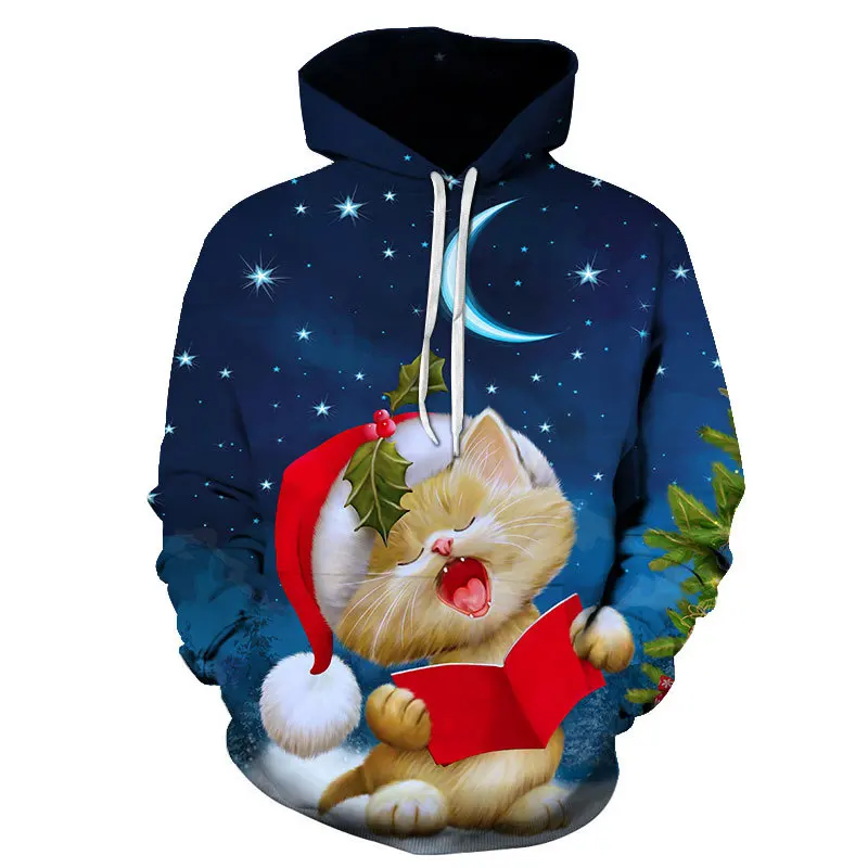 Мужская Рождественская Толстовка с капюшоном, милый кот, 3D печать,...