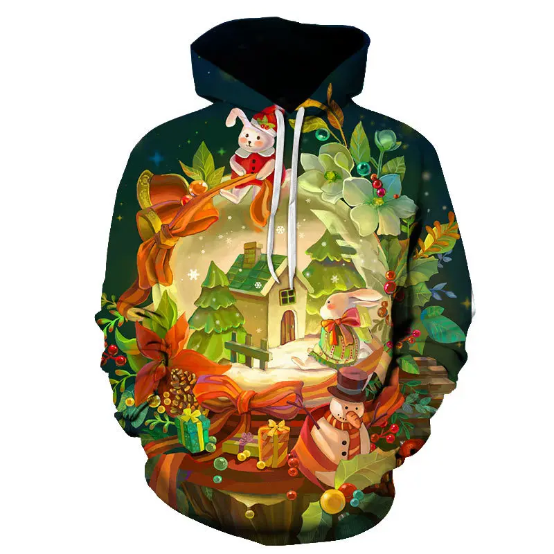 2021 симпатичная Мужская Рождественская Толстовка с капюшоном и 3D-...