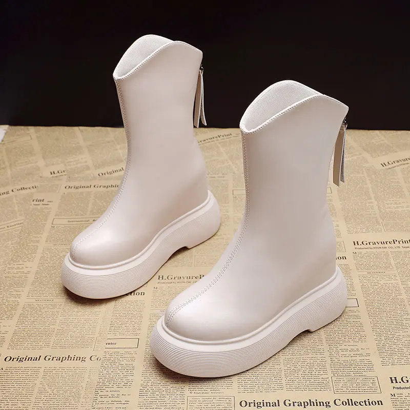 Эластичные ботинки, женские кожаные ботинки, облегающие белые высок...