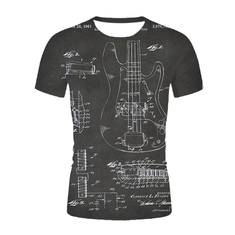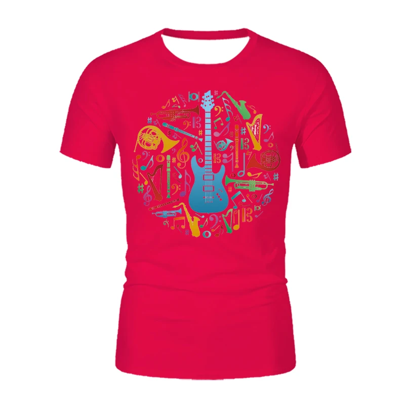 Летняя модная мужская футболка с 3D-принтом музыкальных инструменто...