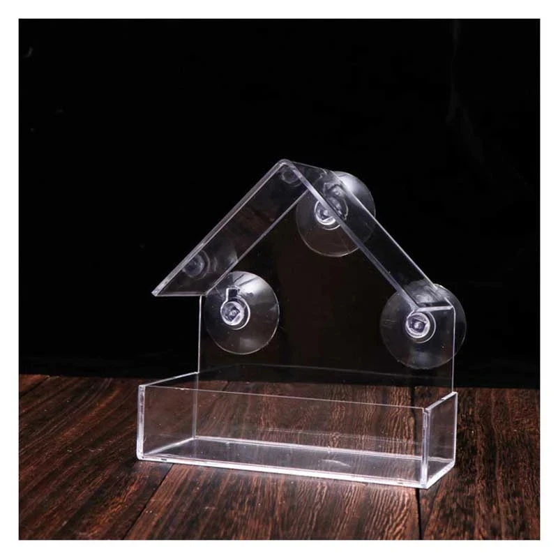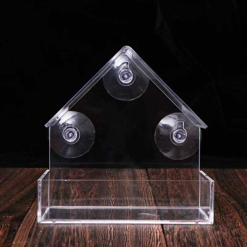 Прозрачная акриловая кормушка для птиц с присоской для сада, двора, наружное украшение, съемный скользящий лоток