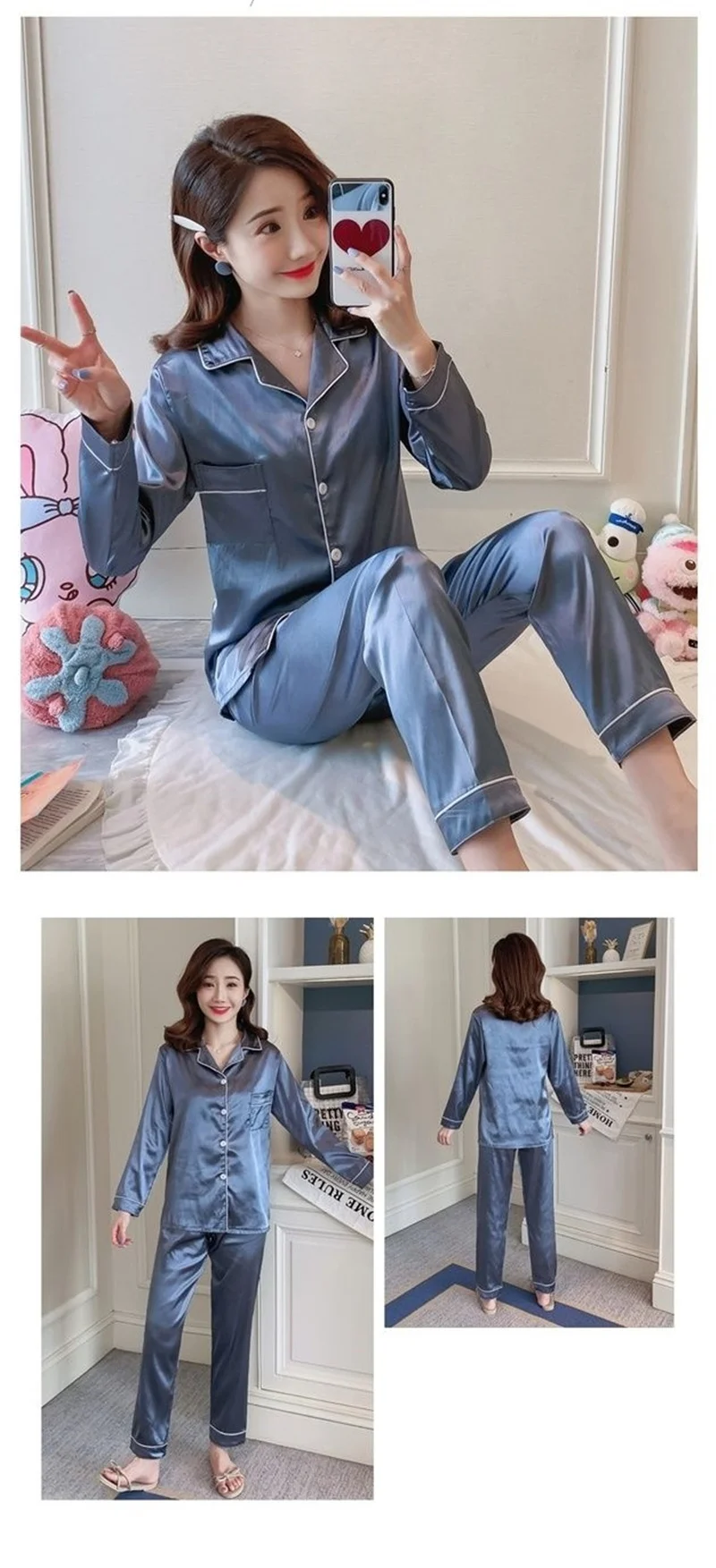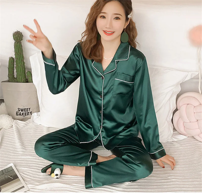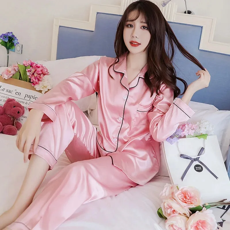 Пижамный комплект из двух предметов, Новинка весна-осень 2021, милая шелковая одежда для сна с длинным рукавом, женская блузка