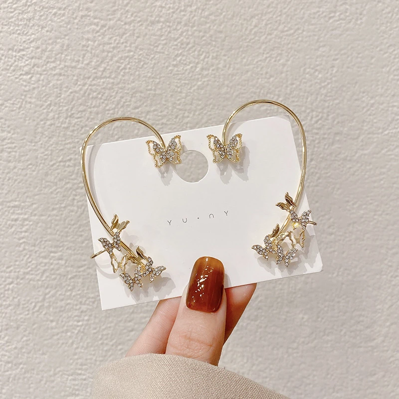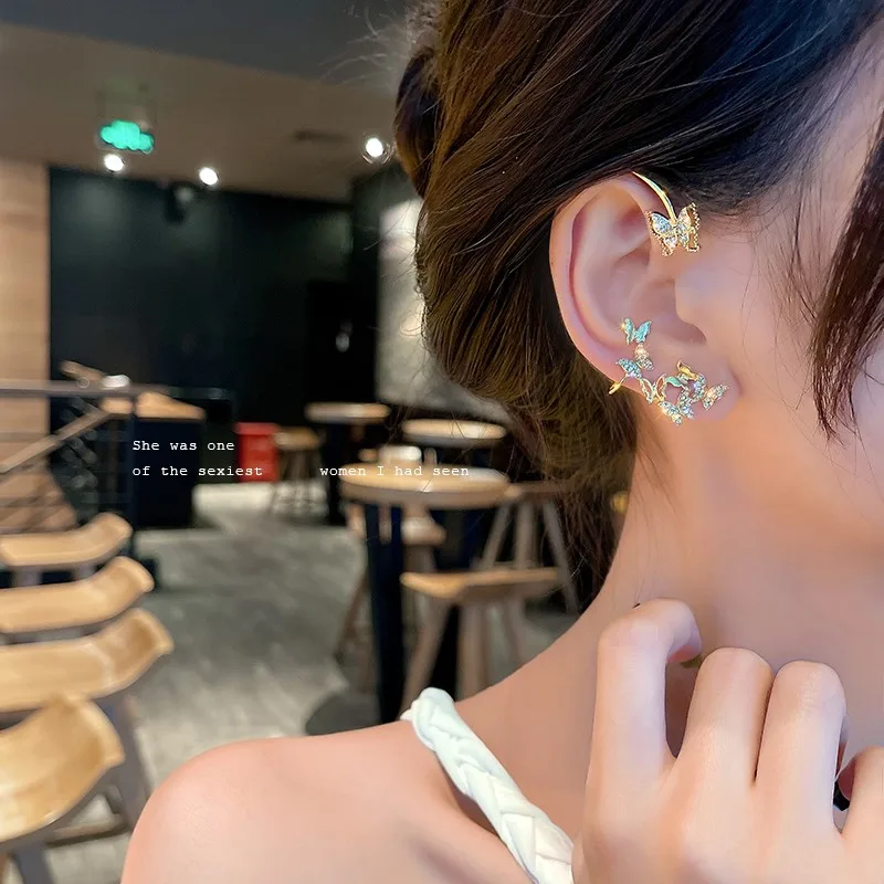 Новинка 2021, модные серьги-клипсы с бабочкой, серьги-клипсы с крючком и жемчугом без проколотых ушей, серьги-цепочки для женщин и девушек, ювелирные изделия, подарки