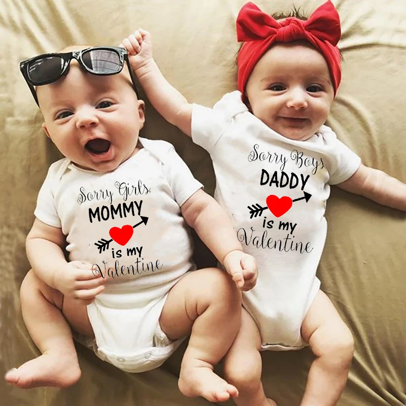 Извините, мальчики, девочки, папа или мама-мой день Святого Валентина, комбинезоны для новорожденных, близнецов, детское хлопковое боди с коротким рукавом, Детские боди