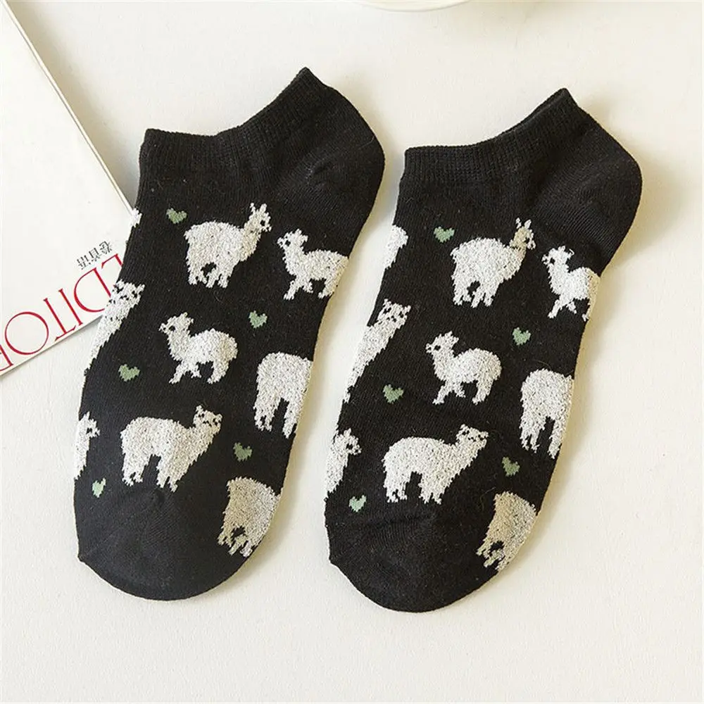 Носки в Корейском стиле унисекс, Модные дышащие хлопковые короткие носки с мультипликационным принтом альпака, 1 пара