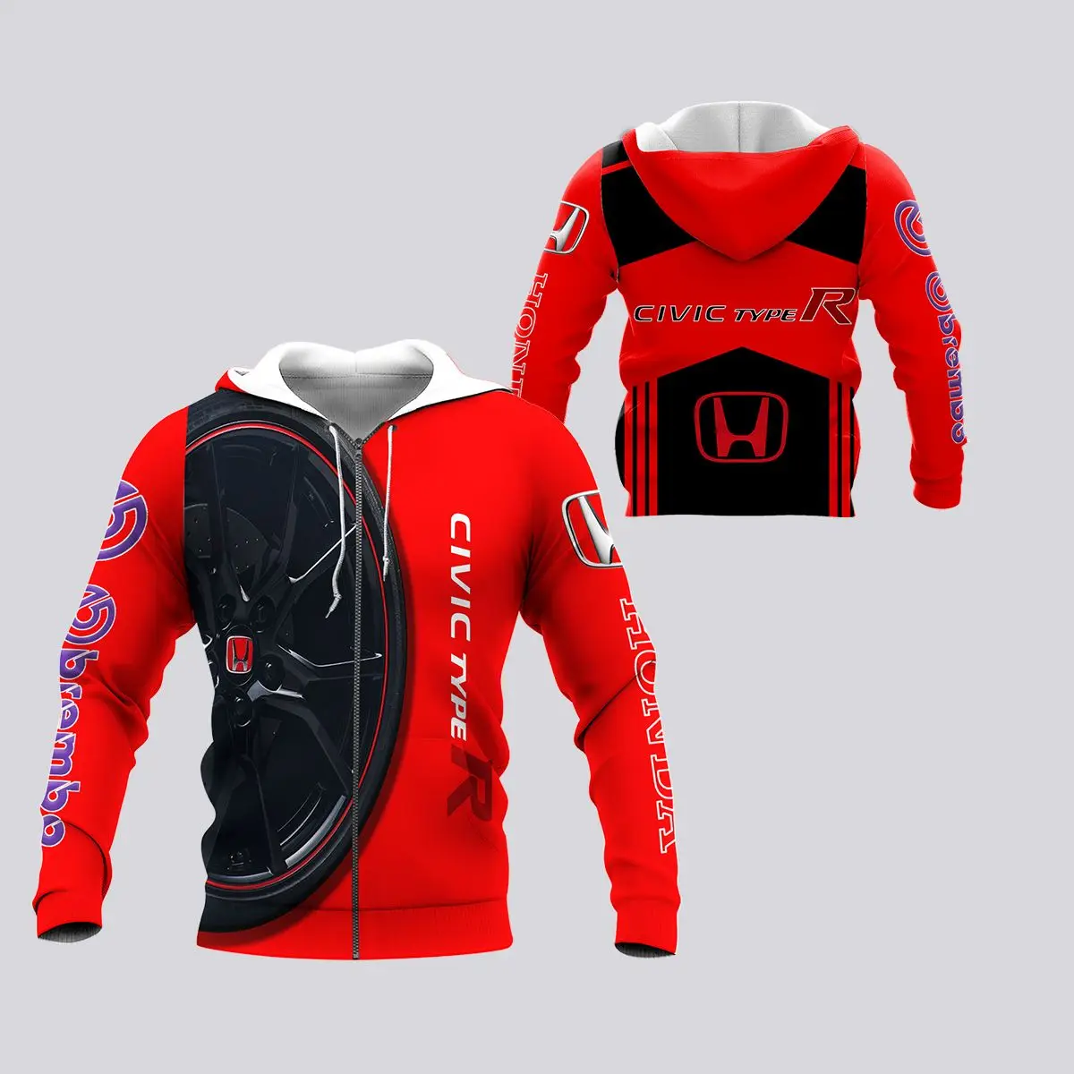 Новая модная толстовка с логотипом Honda Wing, мужская спортивная толстовка с 3D Цифровым принтом, пуловер в стиле Харадзюку, Повседневная Красная толстовка с капюшоном на молнии