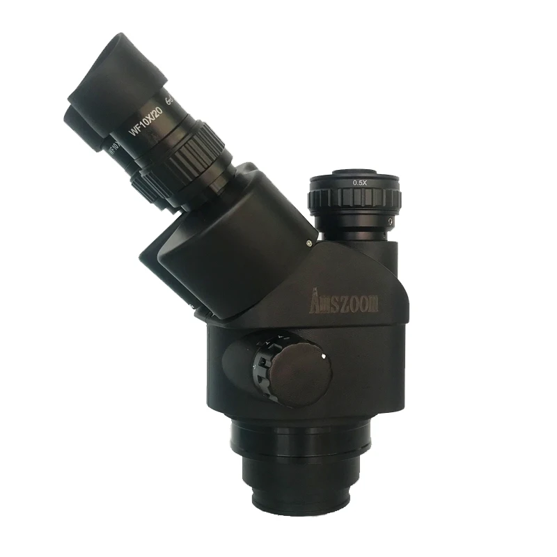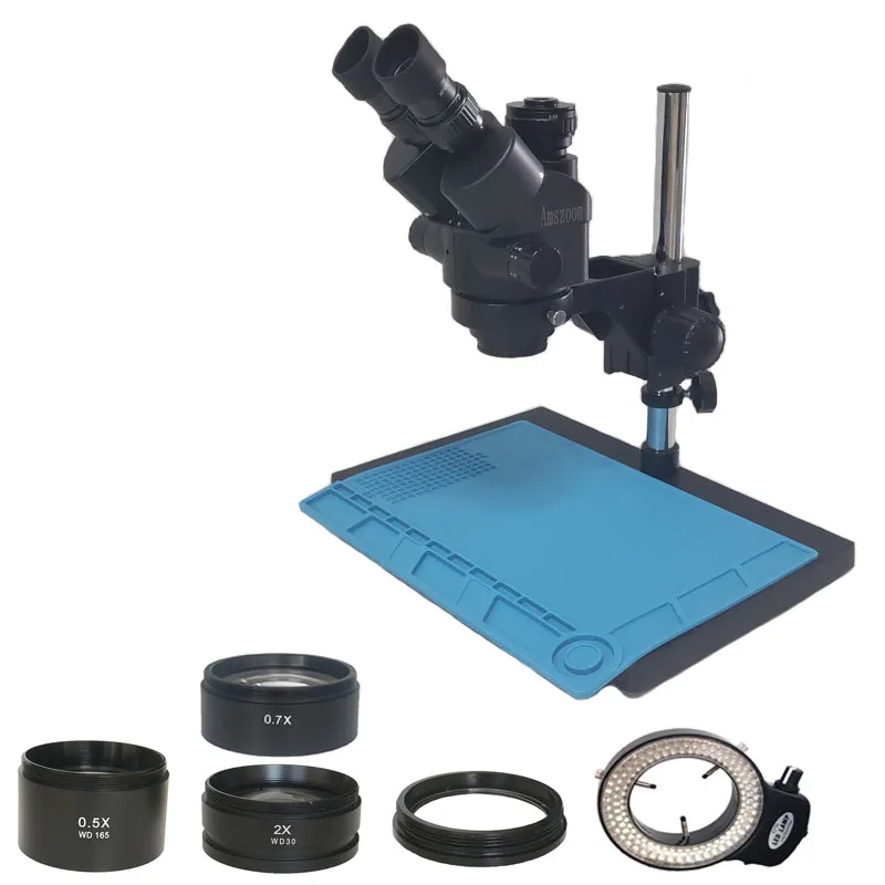 Тринокулярный стереомикроскоп 7X-45X, с универсальным фокусным расстоянием, с объективом 0,5x, 2X, 0,7x, печатная плата, ручной инструмент для ювелирных изделий, черный пластик