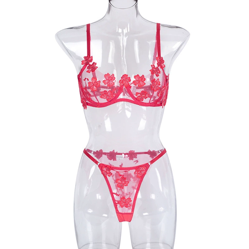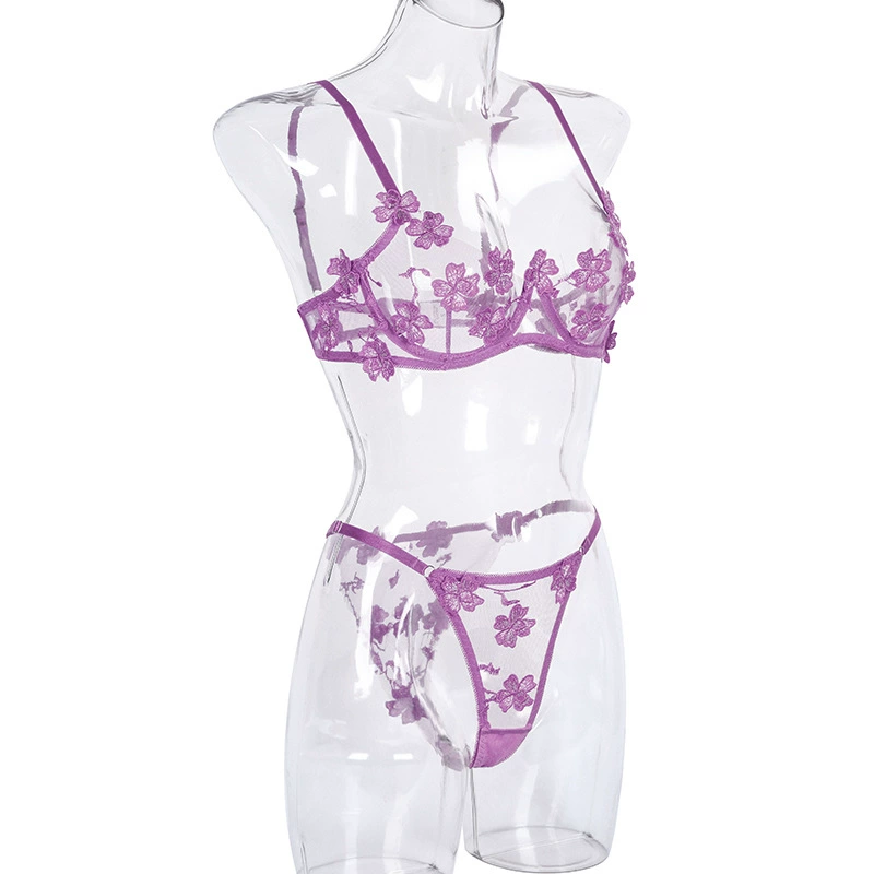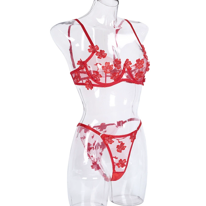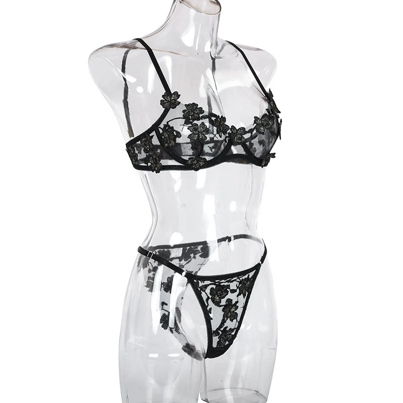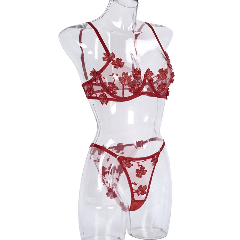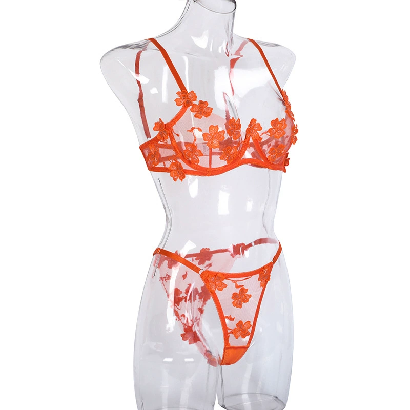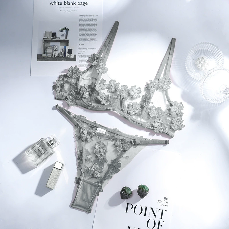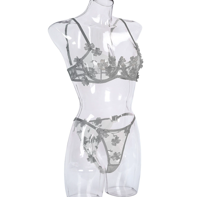 Модное женское Сетчатое нижнее белье, простой и удобный тонкий бюстгальтер, комплекты трусов, прозрачный комплект нижнего белья из сетчатой ткани с вышивкой и цветами