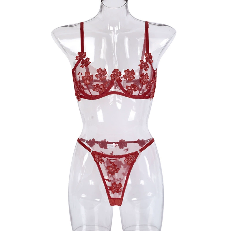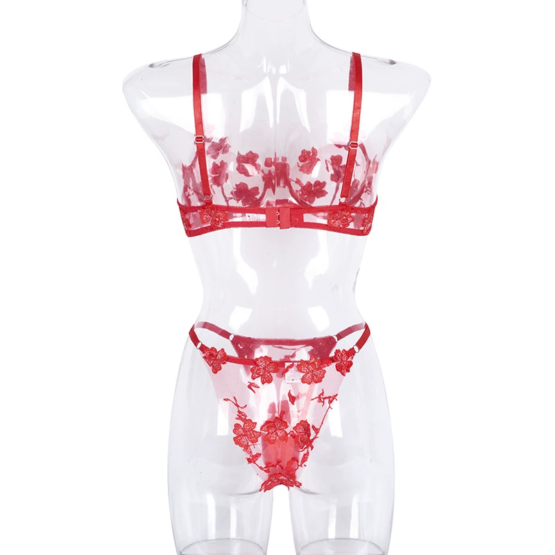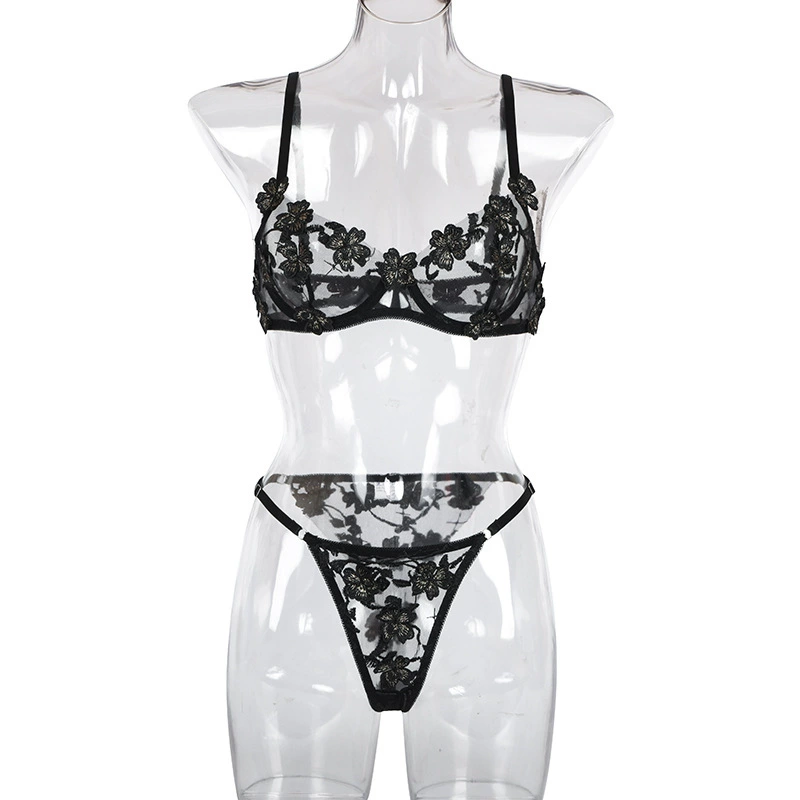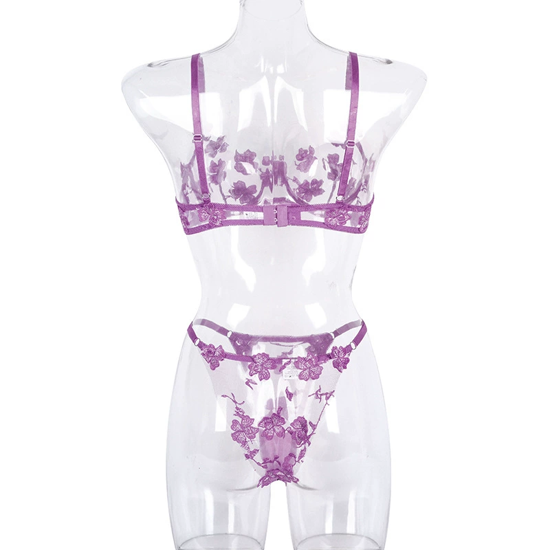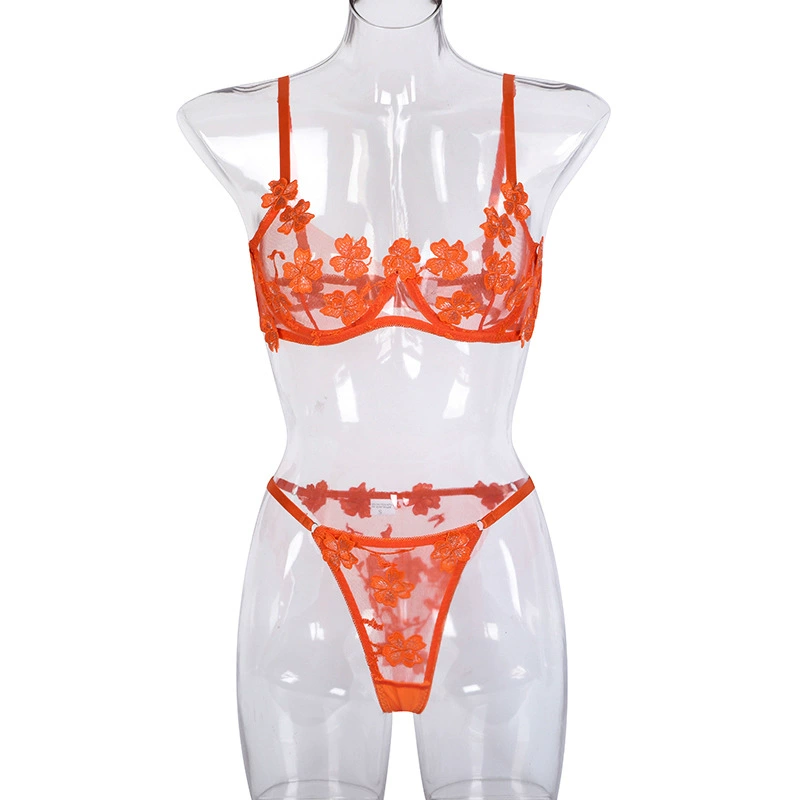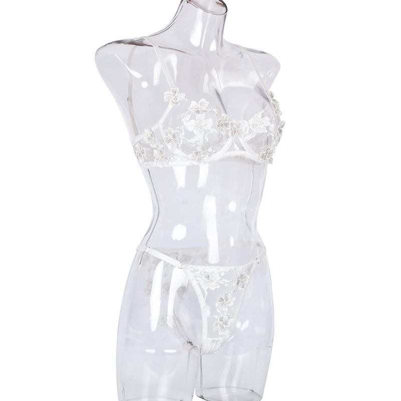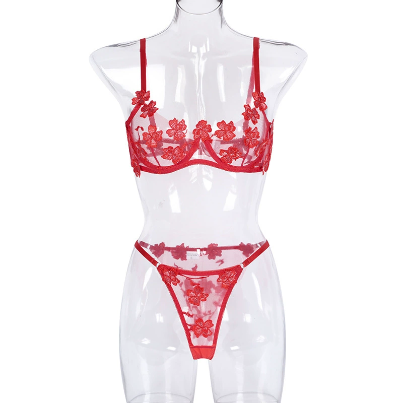 Модное женское Сетчатое нижнее белье, простой и удобный тонкий бюстгальтер, комплекты трусов, прозрачный комплект нижнего белья из сетчатой ткани с вышивкой и цветами