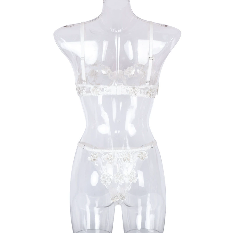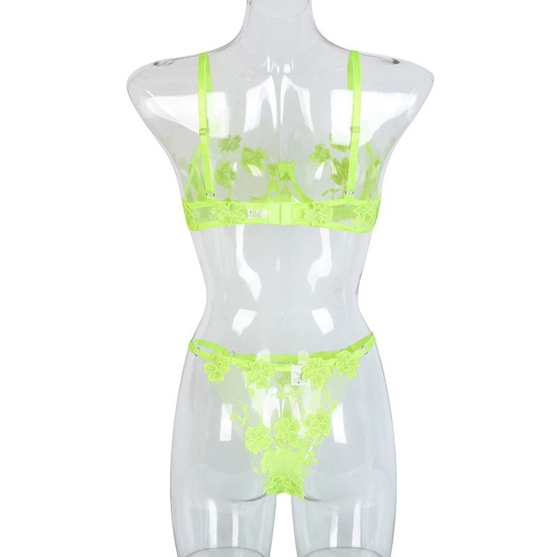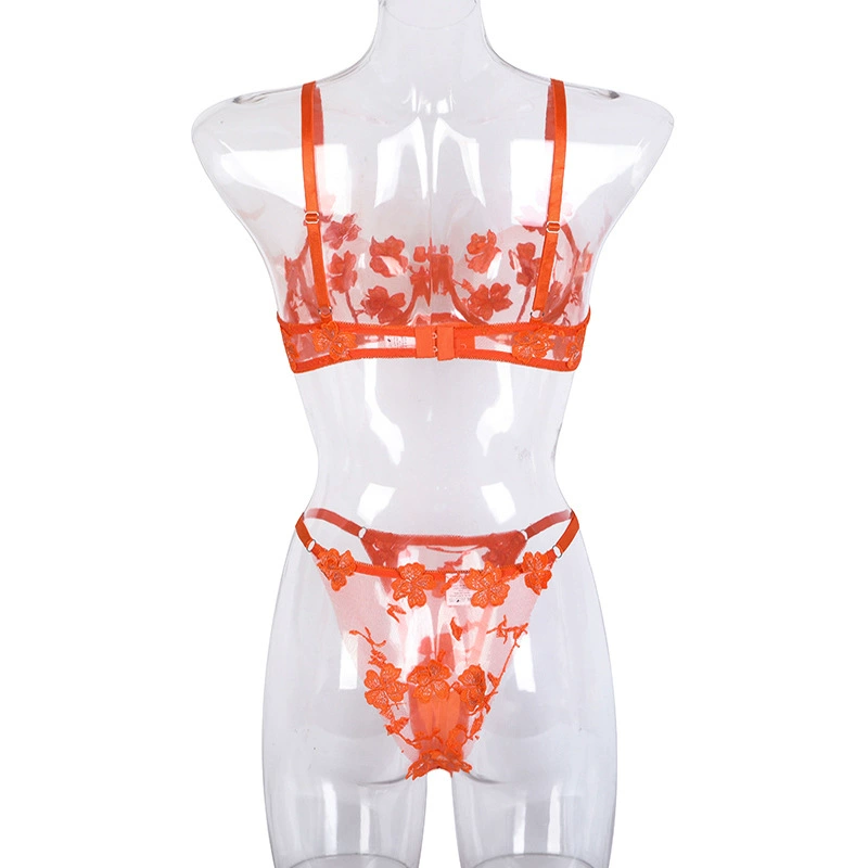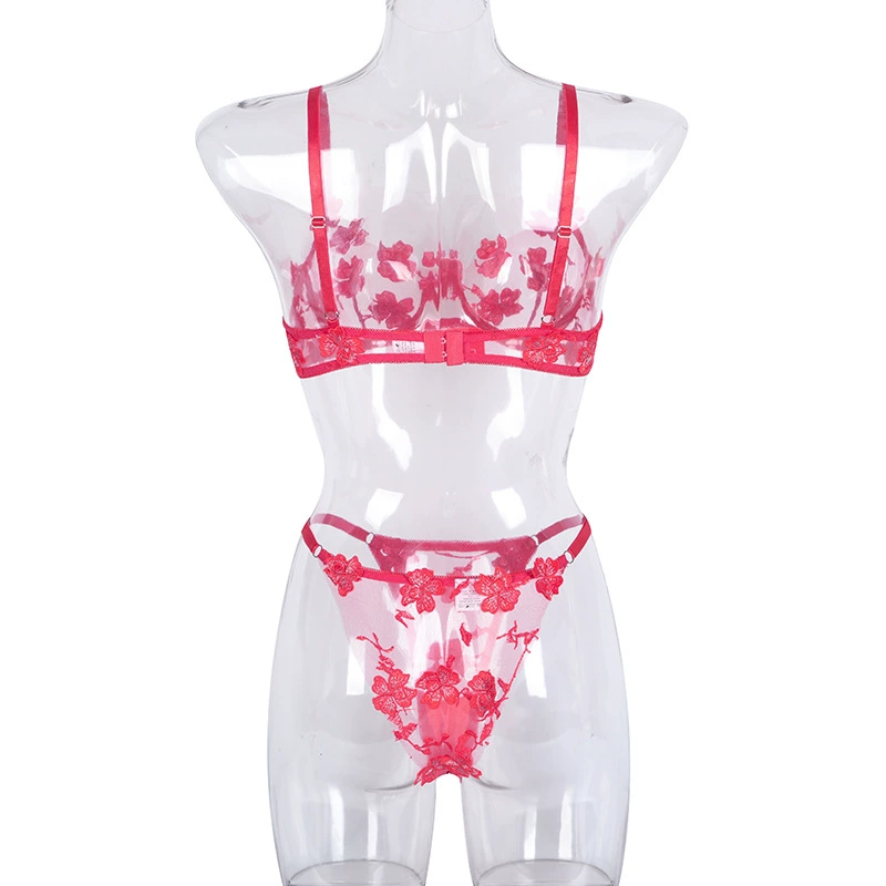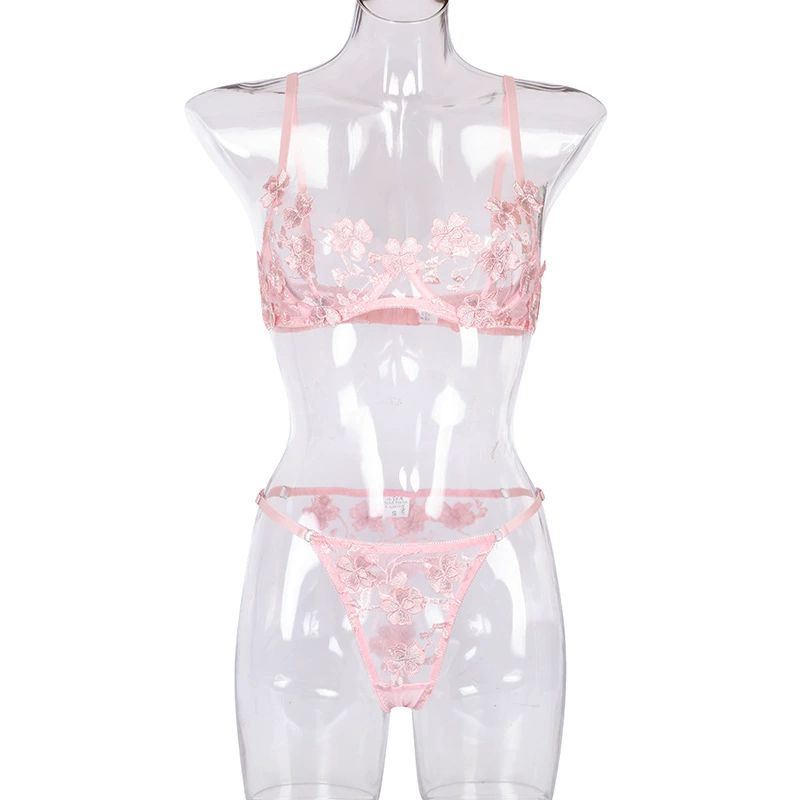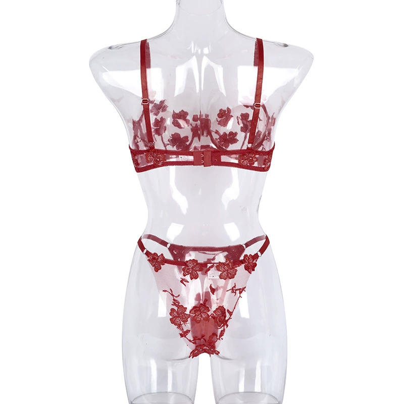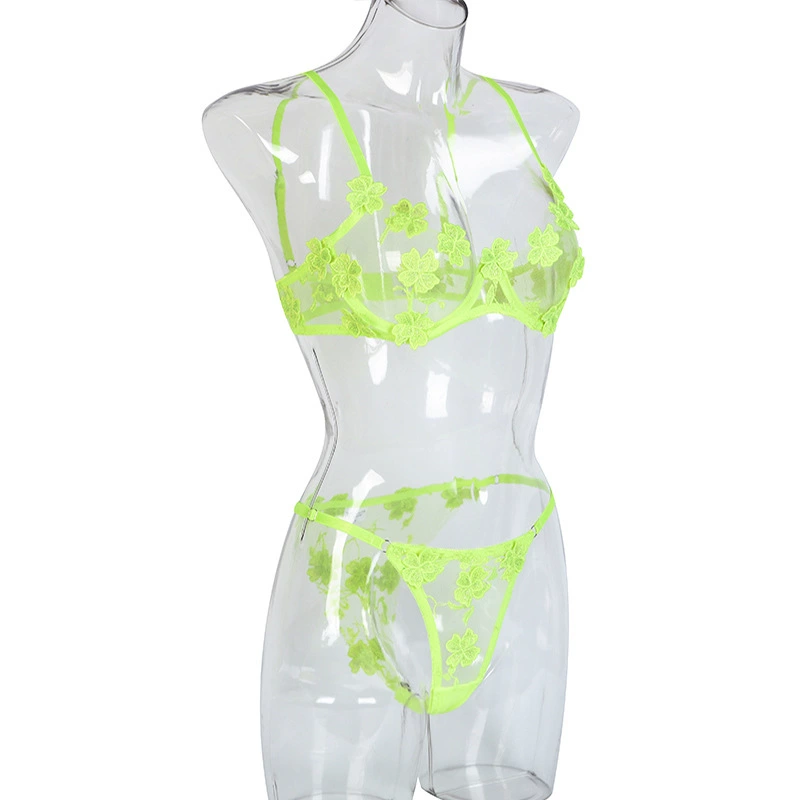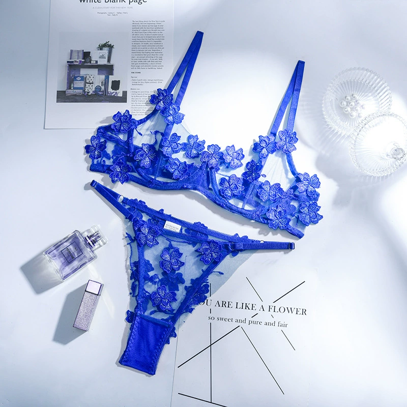 Модное женское Сетчатое нижнее белье, простой и удобный тонкий бюстгальтер, комплекты трусов, прозрачный комплект нижнего белья из сетчатой ткани с вышивкой и цветами
