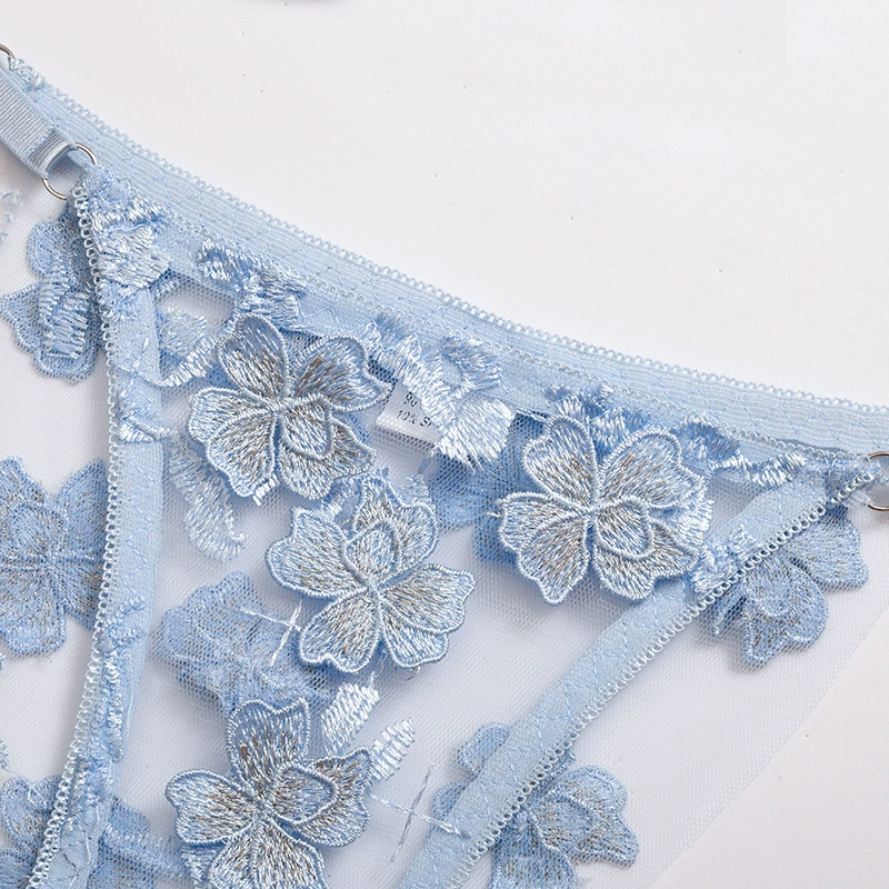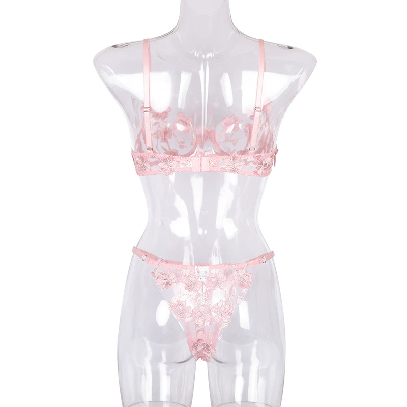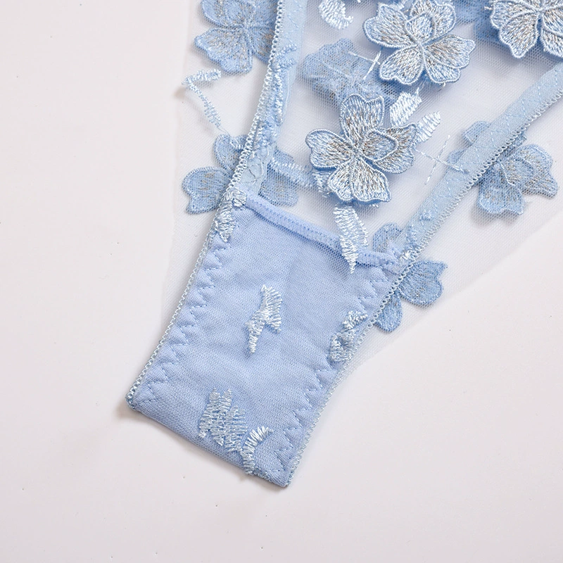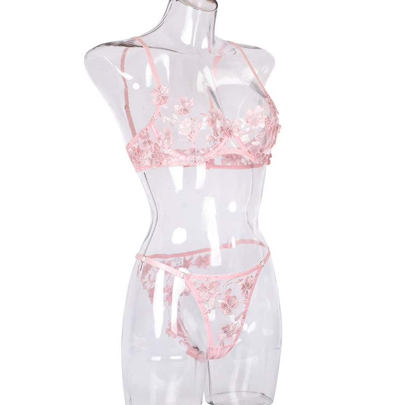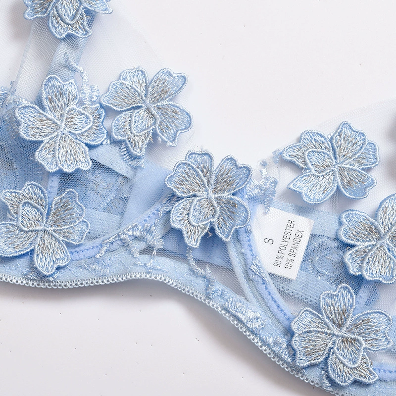 Модный женский сетчатый простой и удобный тонкий бюстгальтер, комплекты трусов, комплект нижнего белья с вышитым цветком и сеткой