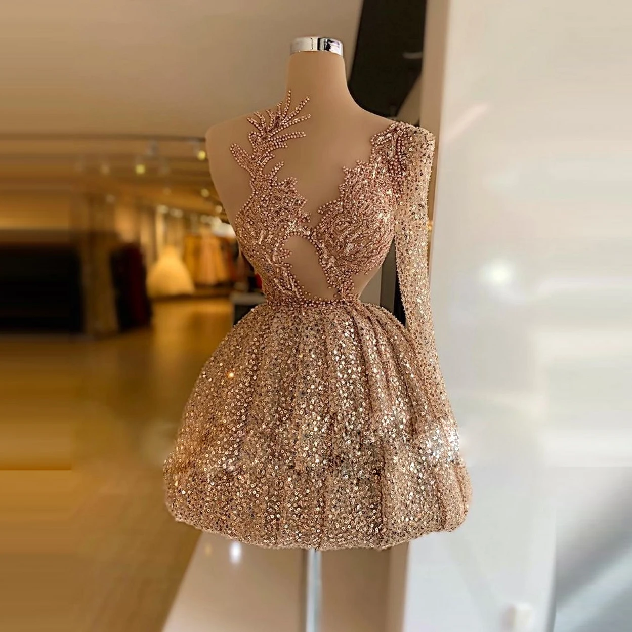 Мини коктейльные платья с блестками и прозрачным вырезом, короткое вечернее платье на одно плечо для рождественских вечеринок, платья для девочек на день рождения