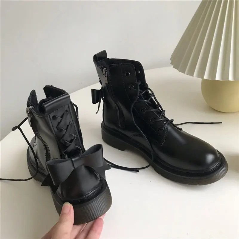 Женские ботинки с бантом HOUZHOU, повседневные черные ботинки на пл...