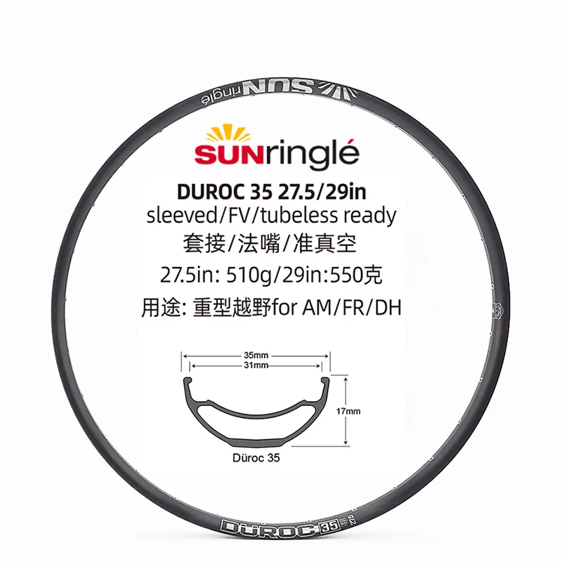 Горный обод Sunringle Durac 303540 27,529 дюймов рукав край 32H28H алюминиевая ободковая безободковая готов для XC TR велосипед ЗАПАСНЫЕ ЧАСТИ