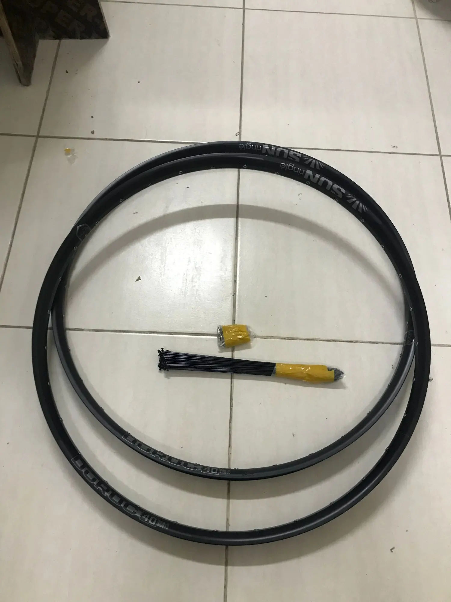 Оригинальные оправы SunRingle, OEM версия: у них есть люверсы, наклейки вместо лазерной гравировки и обода с рукавами, не сварные (но это довольно точно сделано). Мои два обода имеют последовательные серийные номера и взвешенные 483 и 492 грамма. Упаковка хорошая, посылка доставляется курьером.