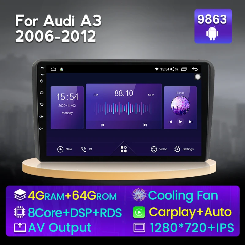 Navifly 8-ядерный Android 11 автомобильное радио аудио мультимедиа для AudiA3S3 2002-2013 4G LTE carplay DSP WIFI 8G + 128G IPS GPS навигация