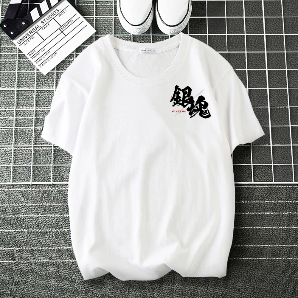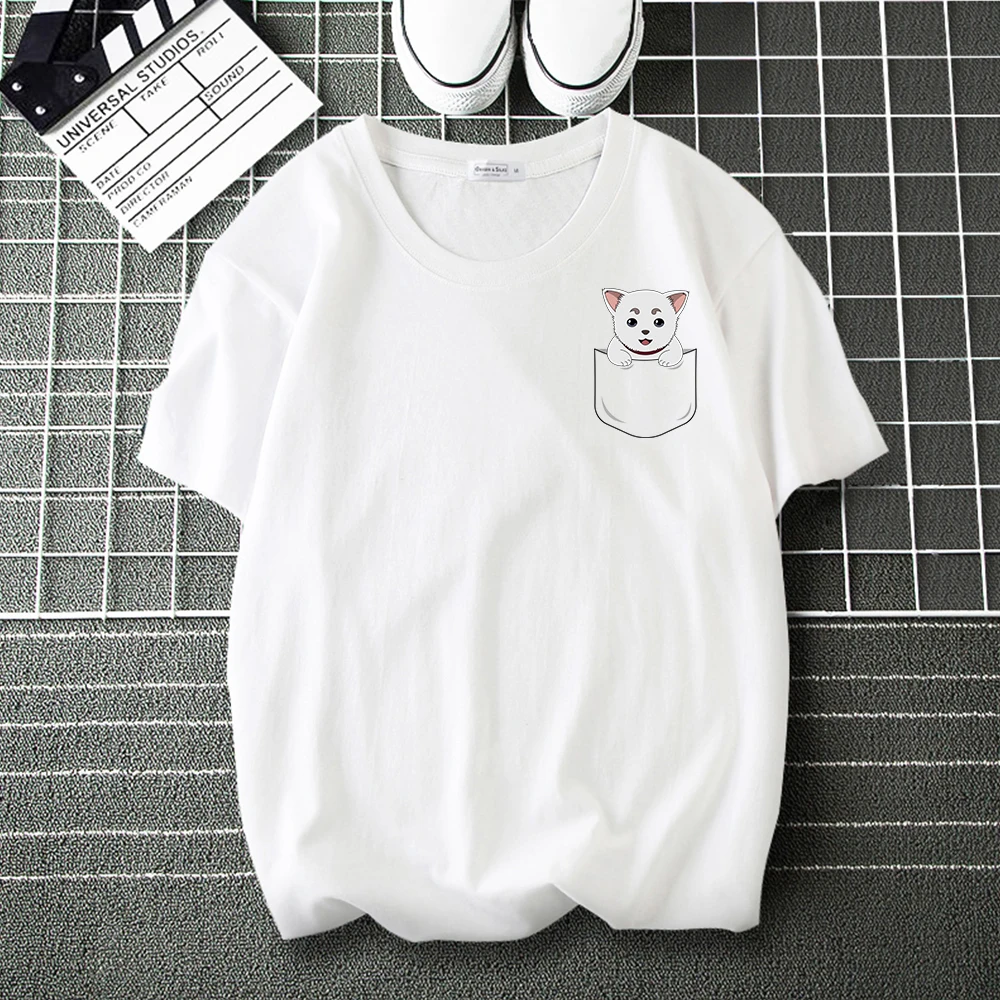 Смешные футболки с карманами из аниме GINTAMA 100% хлопок для мужчин и женщин повседневные футболки Летние брендовые топы мужская мода Harajuku футболка