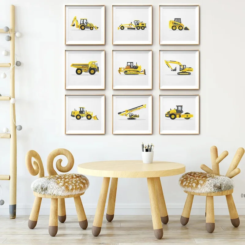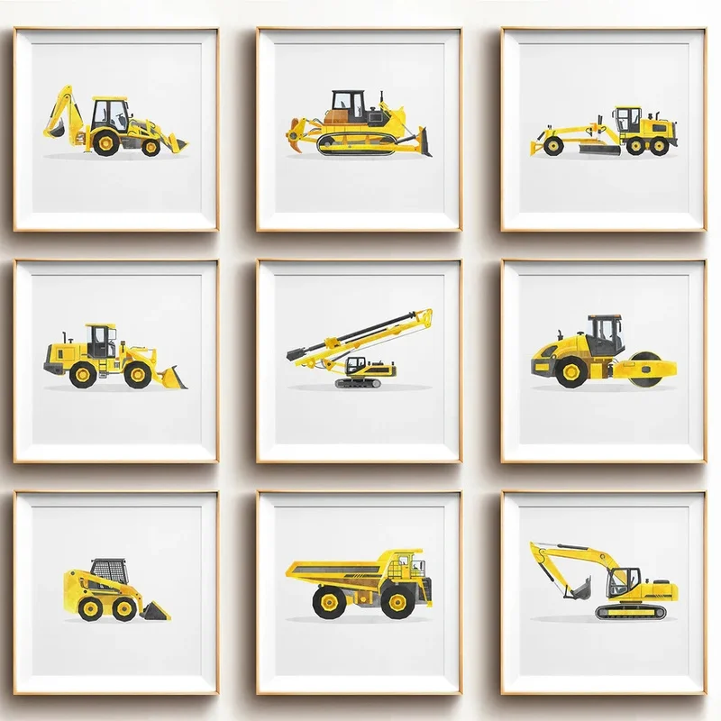 Картина Малый грузовик экскаватор автомобиль мультяшный постер Картина на холсте детская спальня гостиная декоративная картина