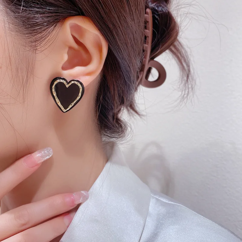 Женские серьги-подвески, черные ажурные серьги в форме сердца, масс...