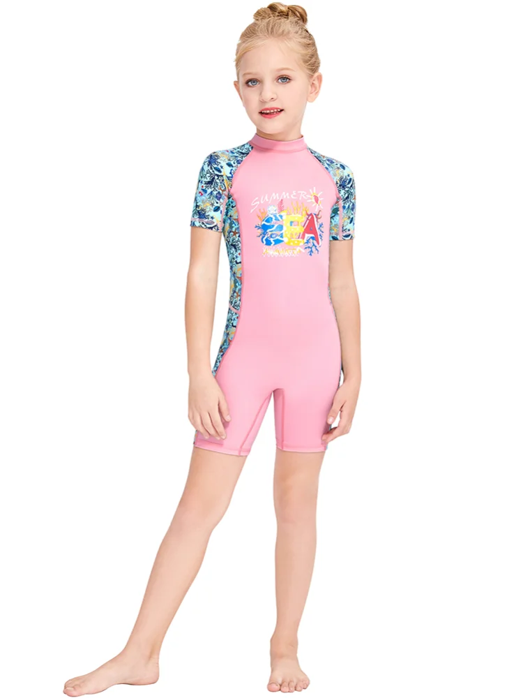 Цельный купальный костюм для девочек, гидрокостюм с короткими рукавами и защитой от ультрафиолета, термальная быстросохнущая одежда для купания для девочек