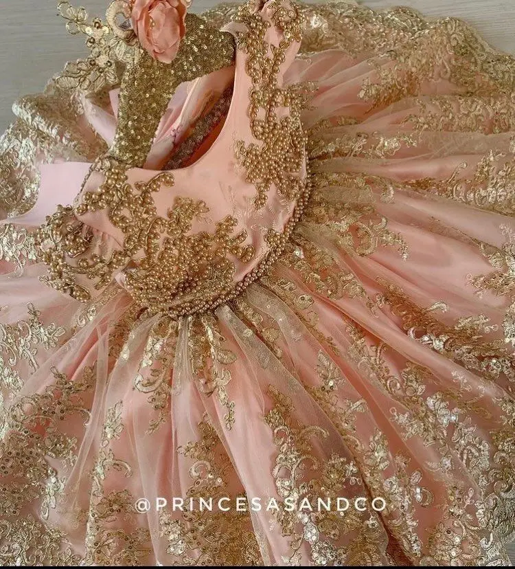 Платья для девочек, пышная юбка с золотыми блестками и цветочным пр...