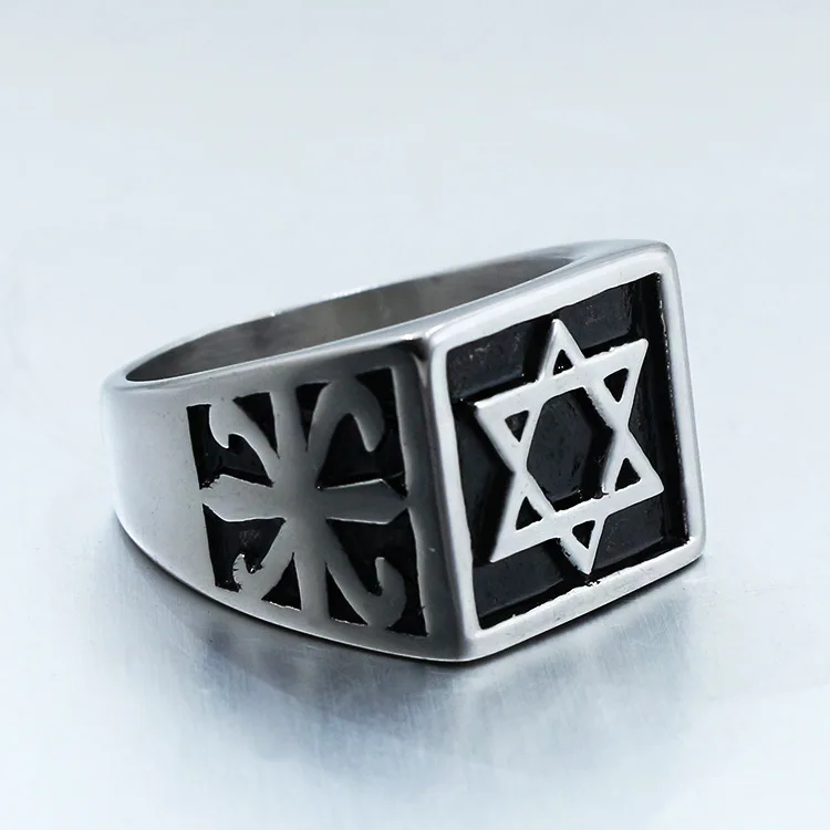 Мужское Винтажное кольцо со звездой Давида и пентаграммой, Ювелирное Украшение в стиле панк, рок, хип-хоп, мотоциклетный браслет