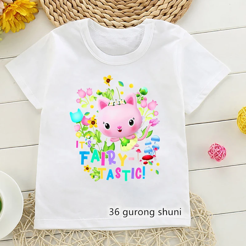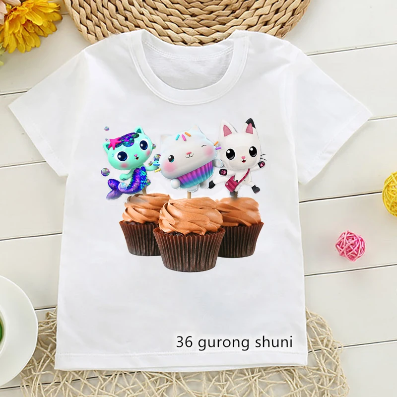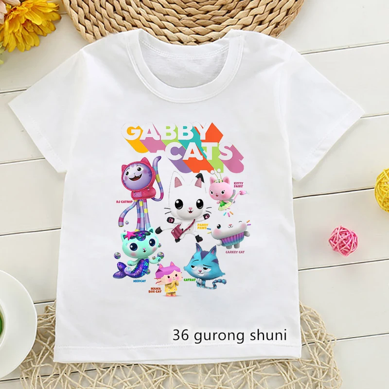 Футболка с графическим принтом я люблю кошек топы для девочек Габби кукольный домик мультяшная детская одежда Харадзюку рубашка кавайная детская одежда