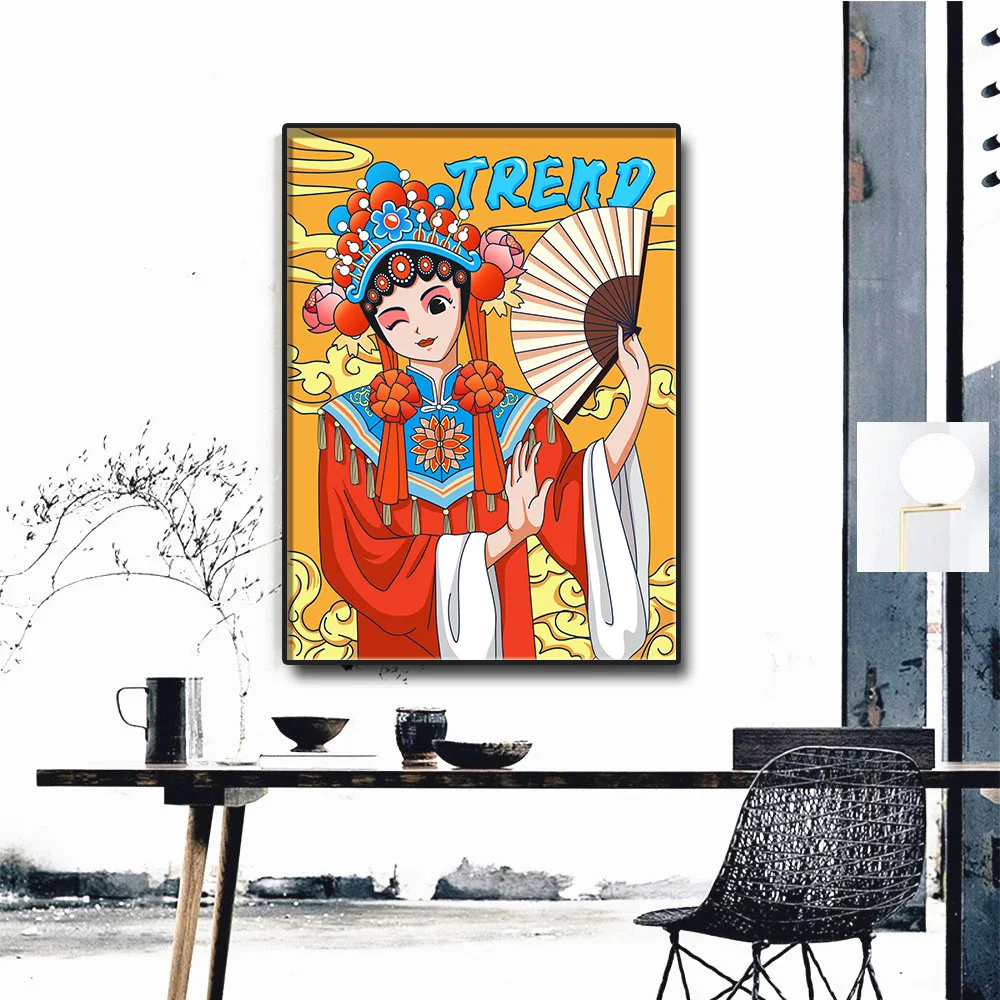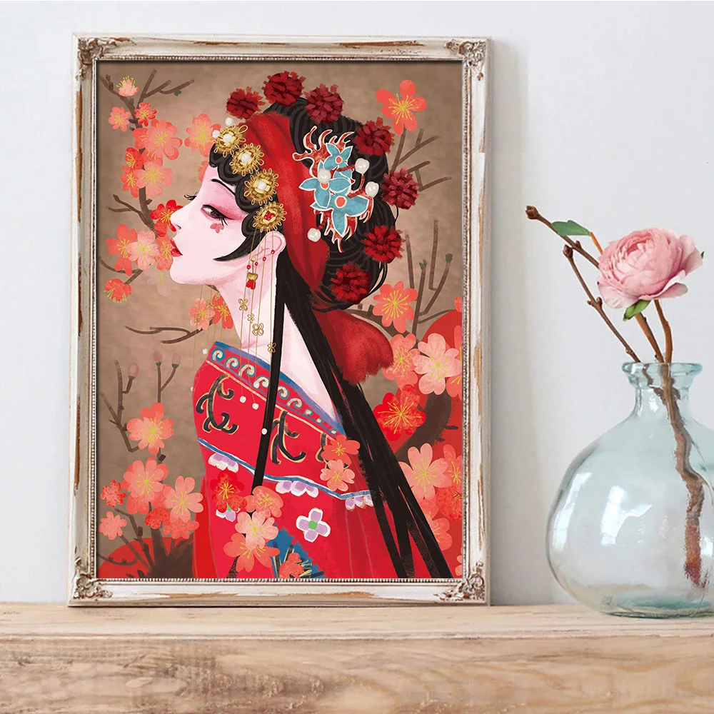 Иллюстрация девочки, алмазная живопись, мультяшный плакат, вышивка ...