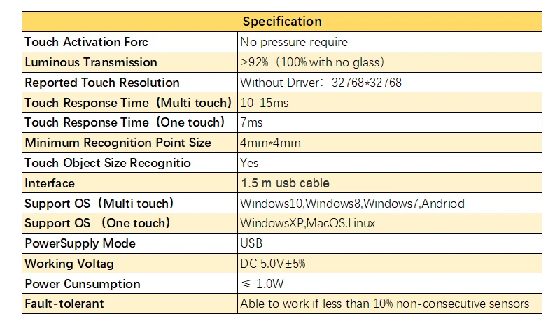 1. Поддержка ОС (Multi touch):Windows10,Windows8,Windows7,Andriod