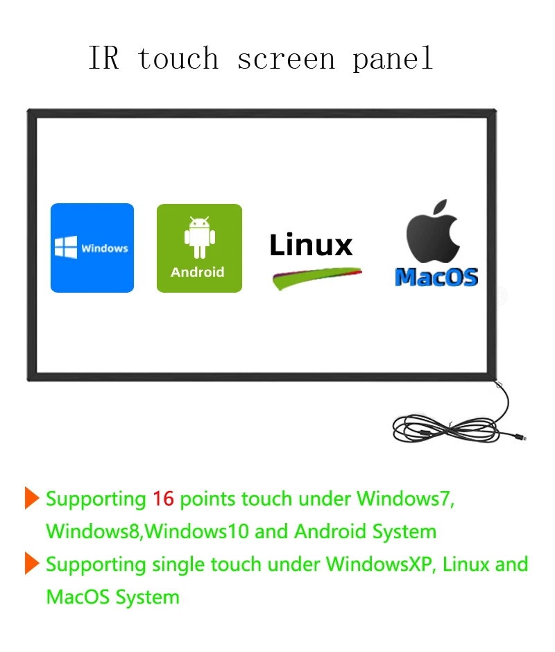 Инфракрасная сенсорная панельСенсорный экран IR-это сенсорная рамка, которая обычно устанавливается перед экраном дисплея. Рамка интегрирована с печатной платой, которая содержит линейку ИК-светодиодов и фототранзисторов Скрытый за рамкой сенсорной рамки. Каждый из ИК-светодиодов и фототранзисторов установлен на противоположных сторонах, чтобы создать сетку невидимого инфракрасного светильник. Рамка защищает части от операцииПараметры 27 дюймов IR сенсорный экран Рамка