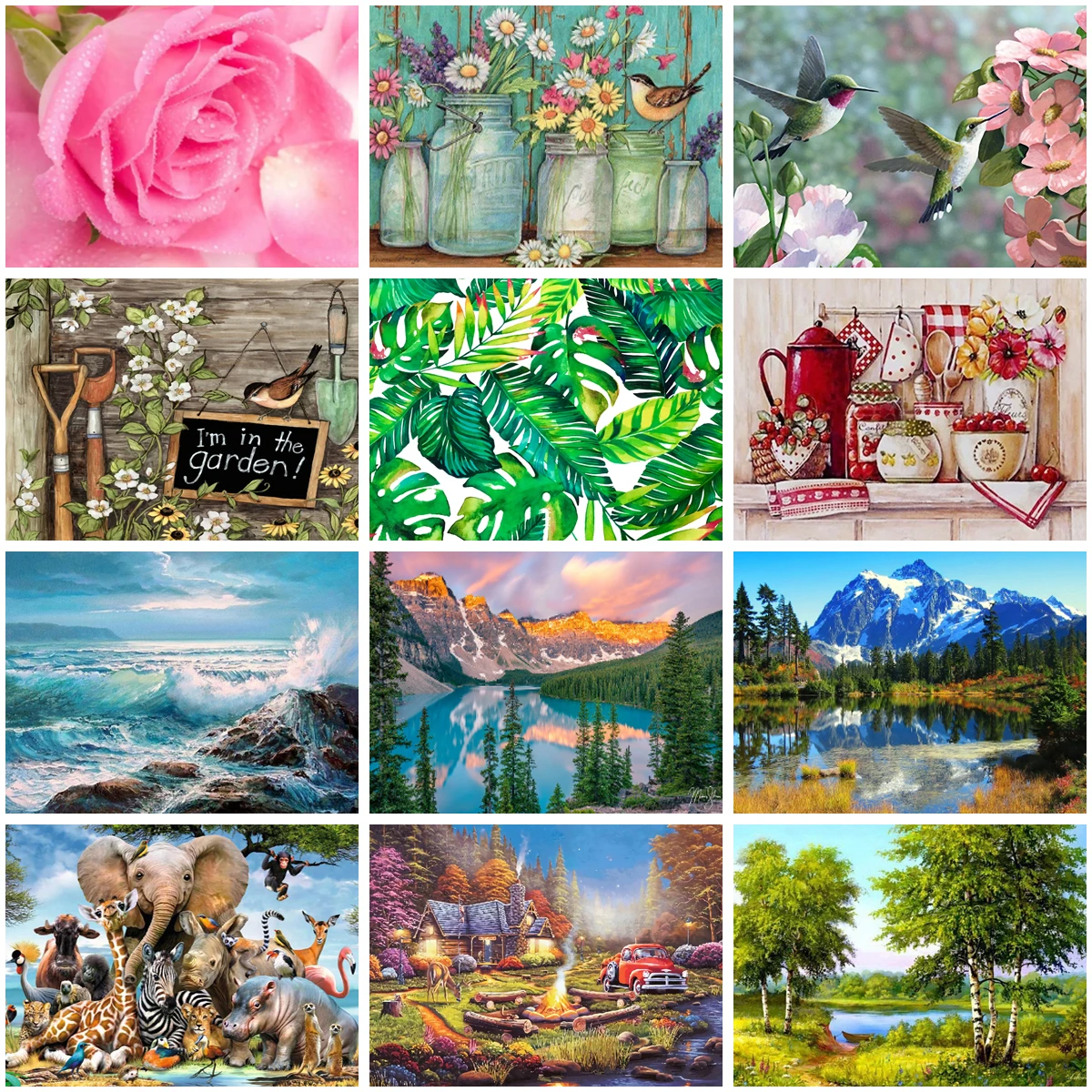 Алмазная картина 5D с изображением пейзажа, растений, цветов, вышив...